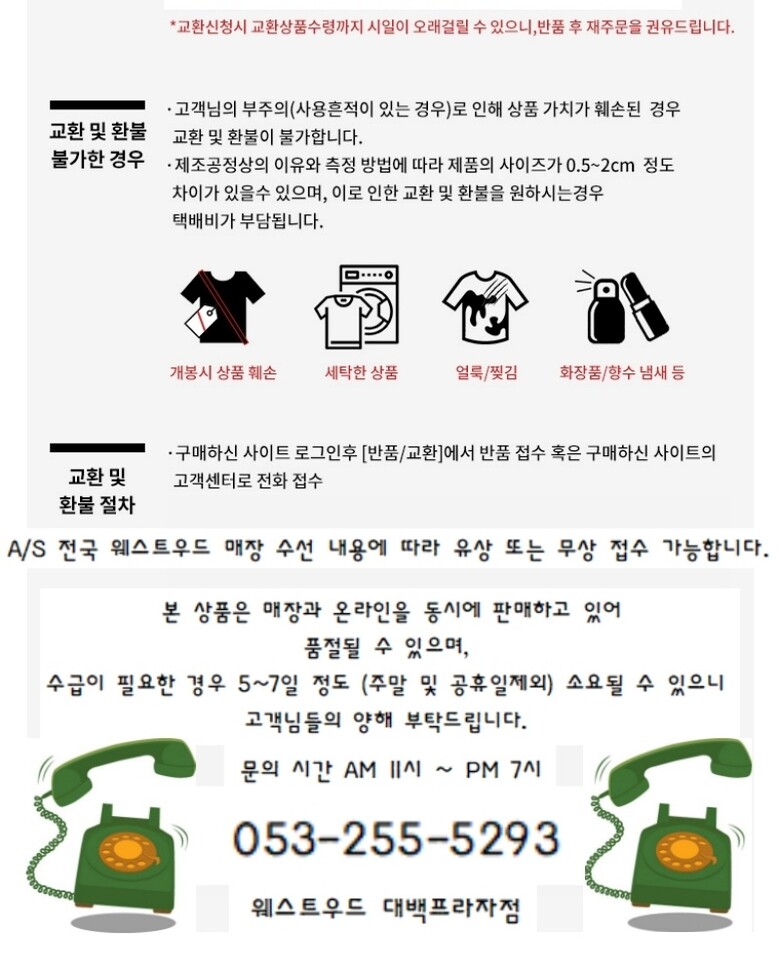 A/S 책임자와 전화번호 : AS 및 기타 문의 사항은 해당 매장 [김진곤,053-255-5293] 으로 전화주시면 감사하겠습니다.