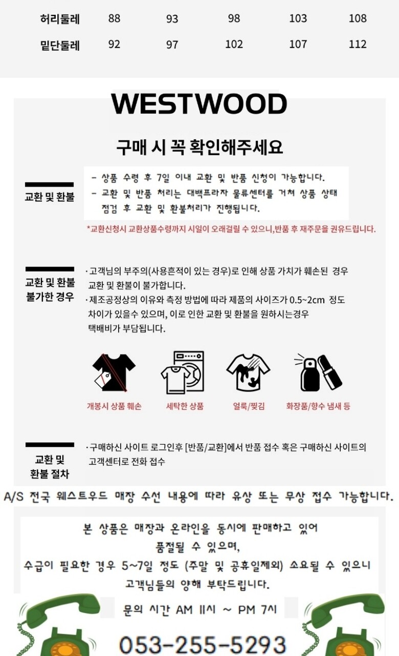 • 처음 배송된 상품상태와 다를 경우(세탁/착용 후 외출하신 경우) 반품이 불가합니다.