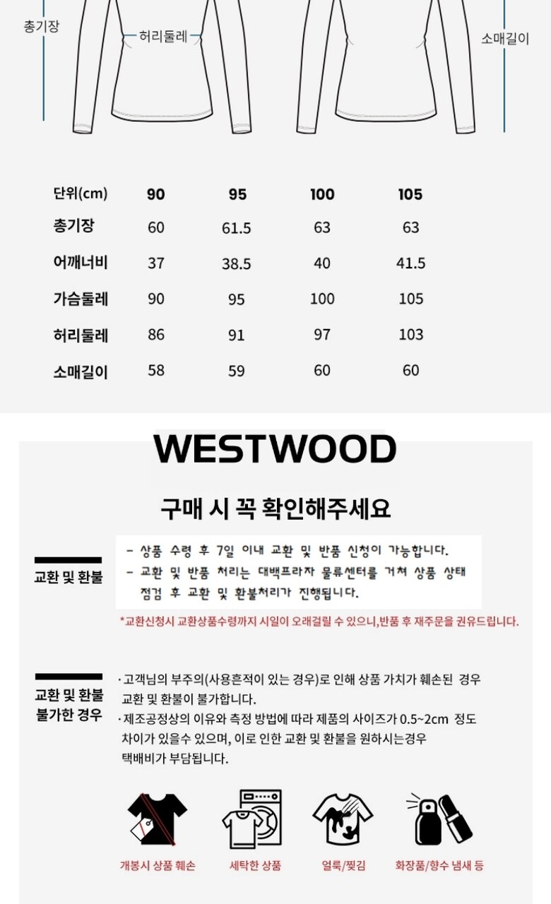 • 처음 배송된 상품상태와 다를 경우(세탁/착용 후 외출하신 경우) 반품이 불가합니다.