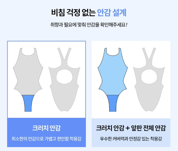 수영복 소재는 우레탄 성분으로 이루어져 있어 물에 들어가면 잘 늘어나도록 되어 있습니다.