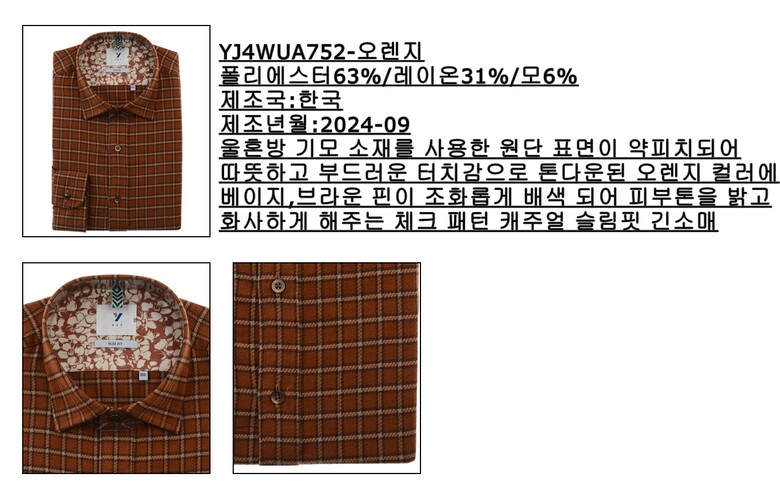 YJ4WUA752_울혼방 기모 체크 캐주얼 슬림 긴소매