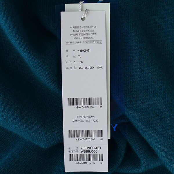 | 1. 제품 소재 (섬유의 조성 또는 혼용률을 백분율로 표시, 기능성인 경우 성적서 또는 허가서) | 캐시미어100% |