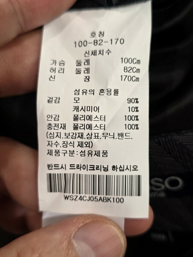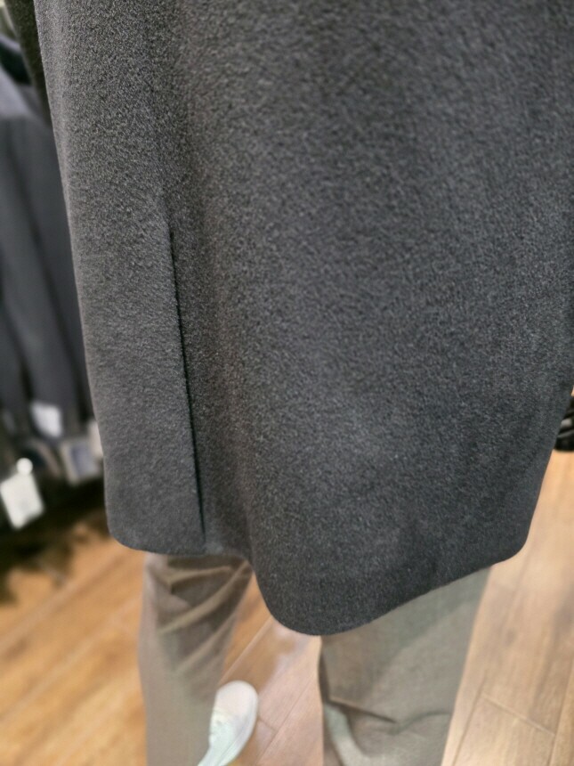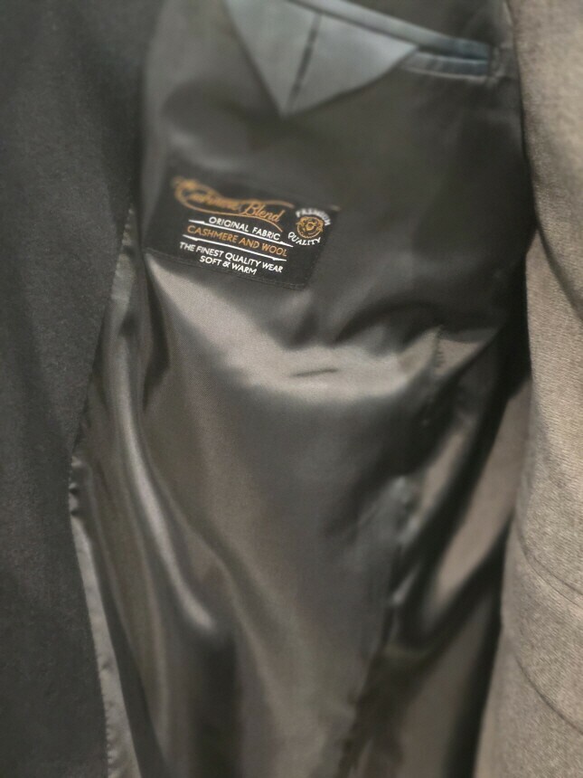 | 1. 제품 소재 (섬유의 조성 또는 혼용률을 백분율로 표시, 기능성인 경우 성적서 또는 허가서) | 겉감 : 모 90% , 캐시미어 10% 안감 : 폴리에스터 100% 충전재 : 폴 |