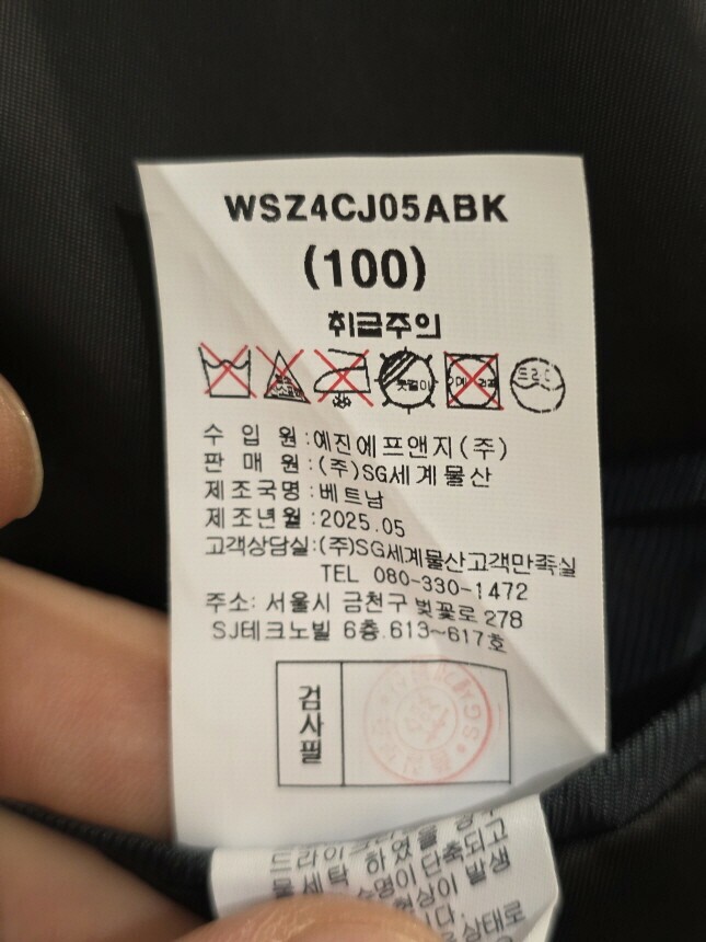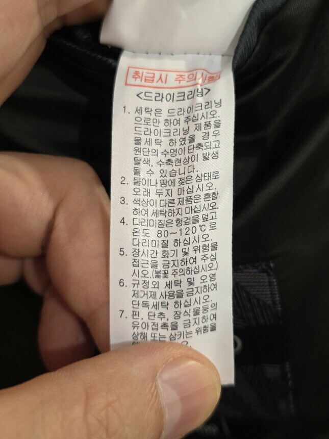 | 6. 세탁방법 및 취급시 주의사항 | 드라이크리닝 |