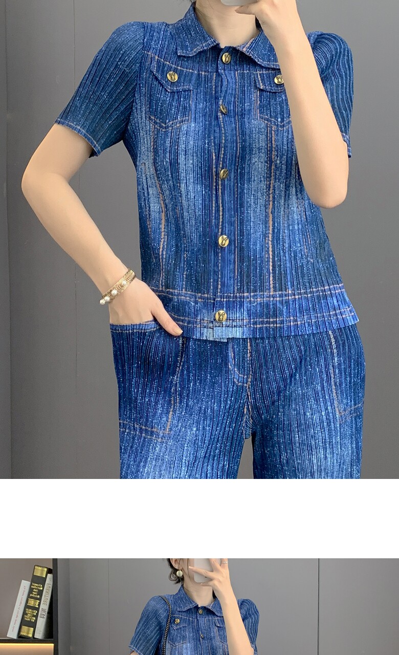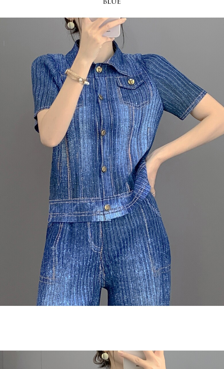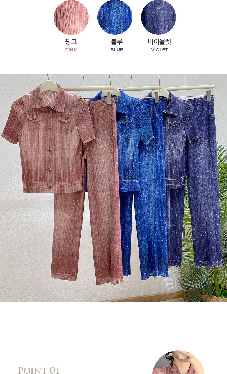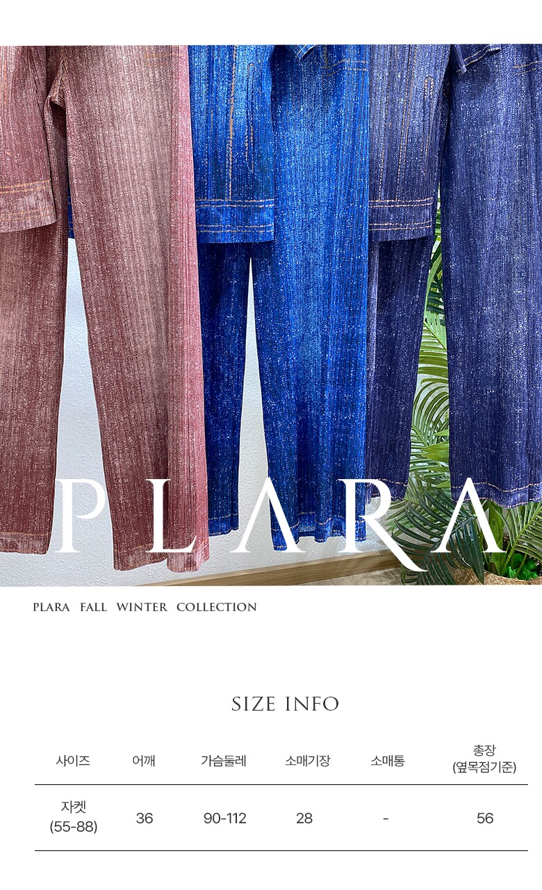 플라라 (88까지)플리츠페이크데님자켓+팬츠SET