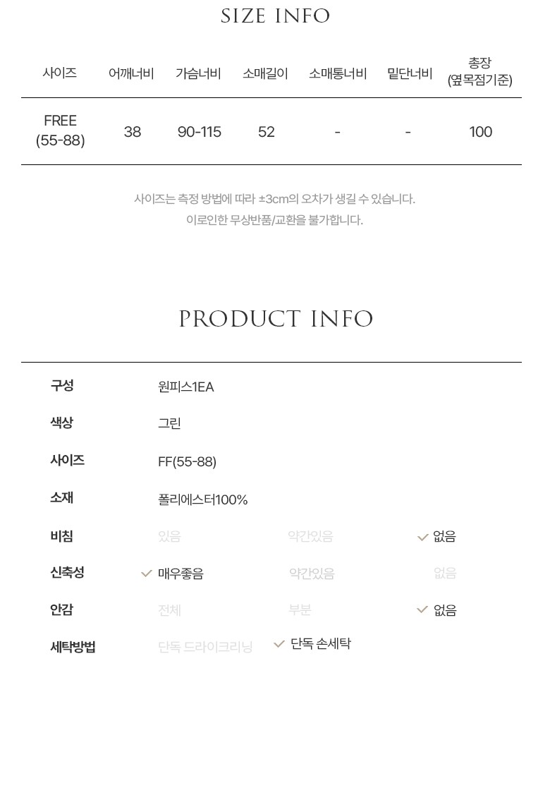 • 처음 배송된 상품상태와 다를 경우(세탁/착용 후 외출하신 경우) 반품이 불가합니다.