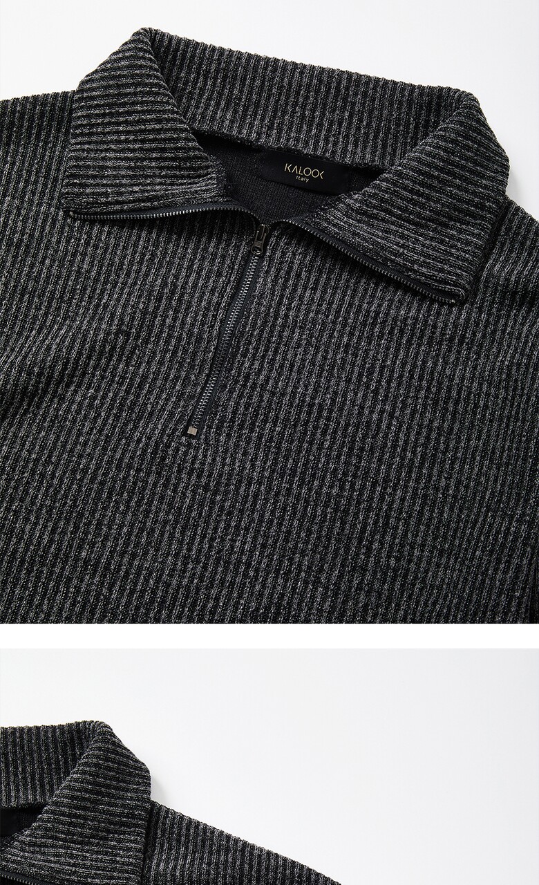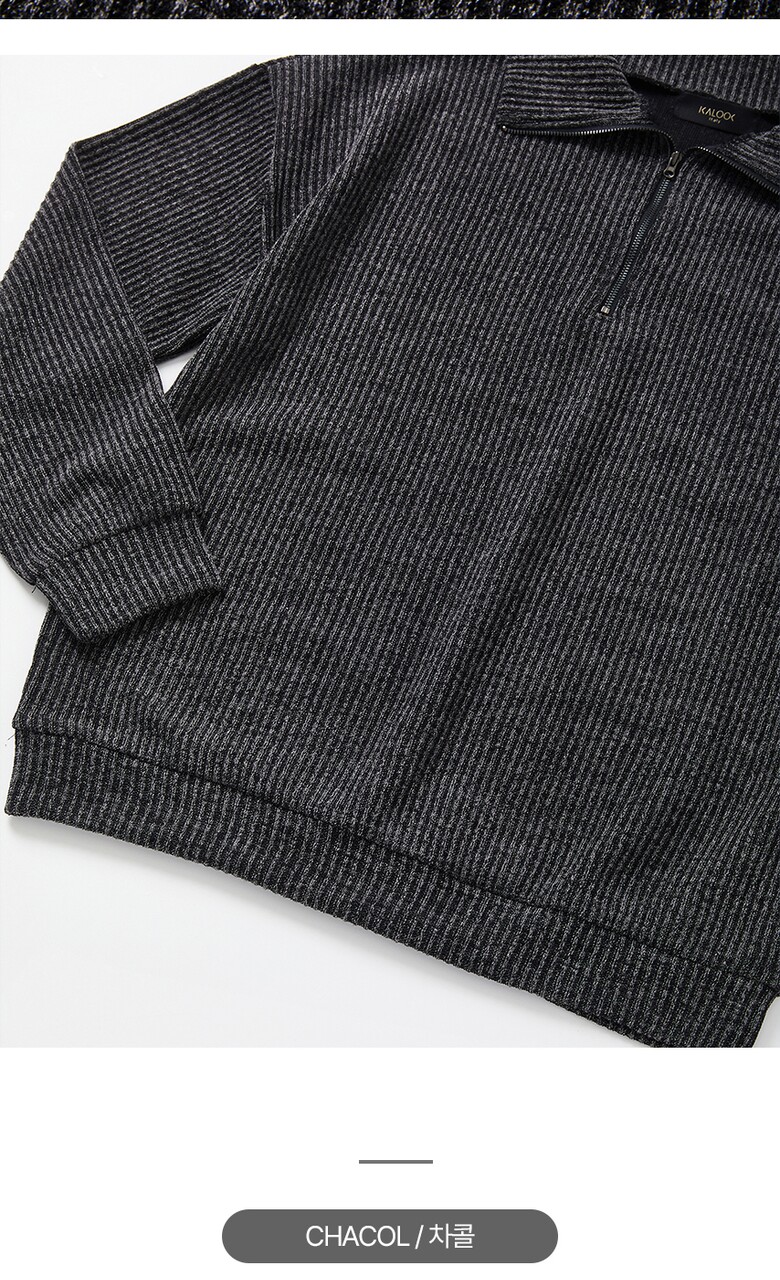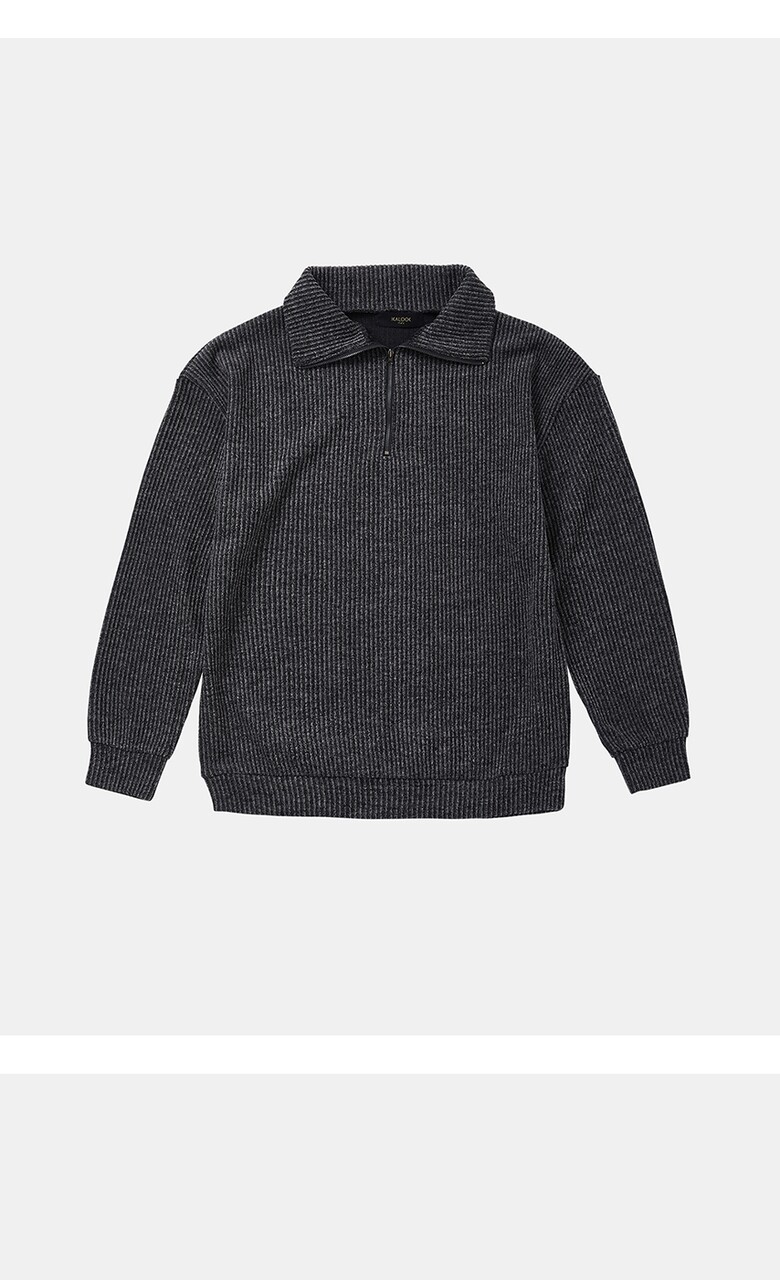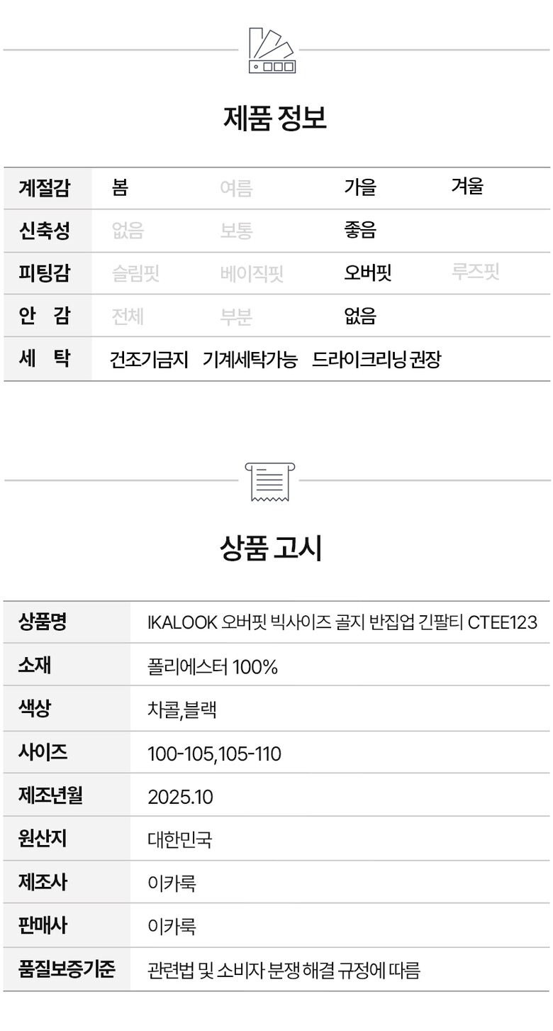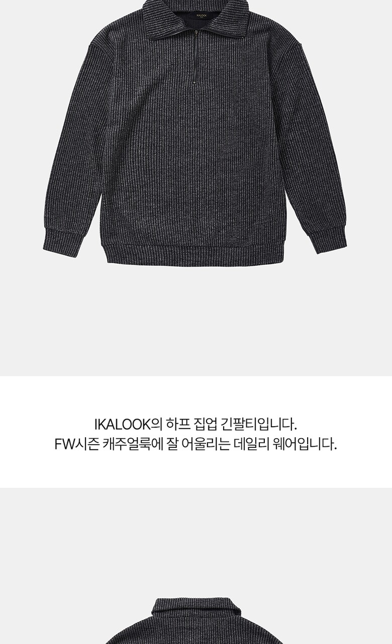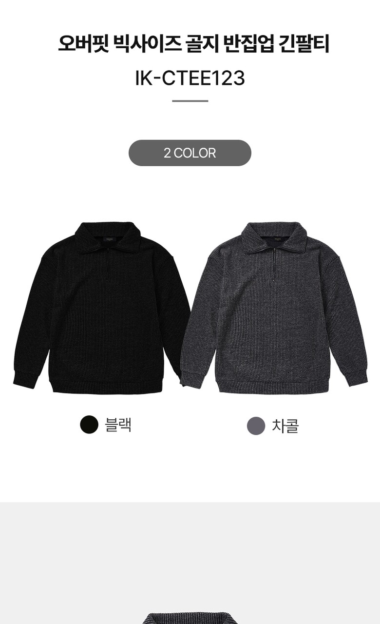 IKALOOK 오버핏 빅사이즈 골지 반집업 긴팔티 CTEE123