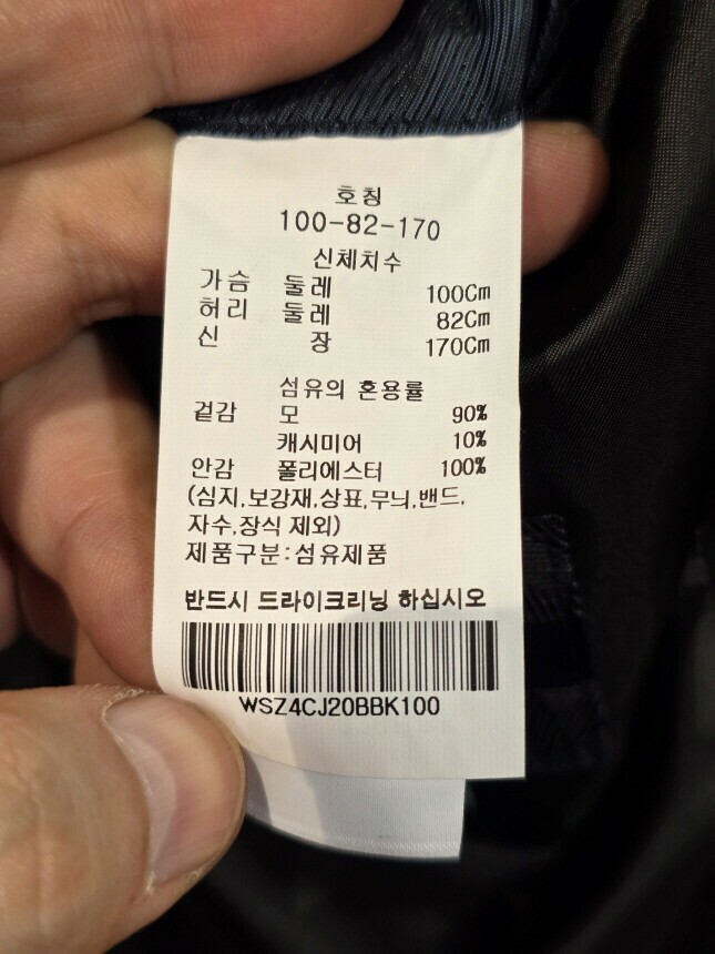 | 1. 제품 소재 (섬유의 조성 또는 혼용률을 백분율로 표시, 기능성인 경우 성적서 또는 허가서) | 겉감 : 모 90% , 캐시미어 10% 안감 : 폴리에스터 100% (심지,보강재 |