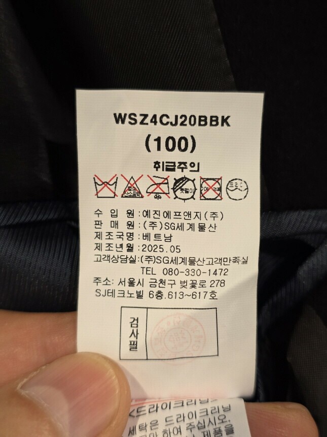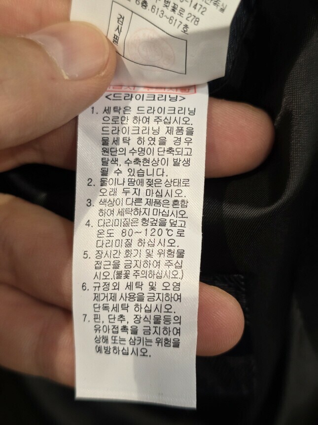 | 6. 세탁방법 및 취급시 주의사항 | 드라이크리닝 |