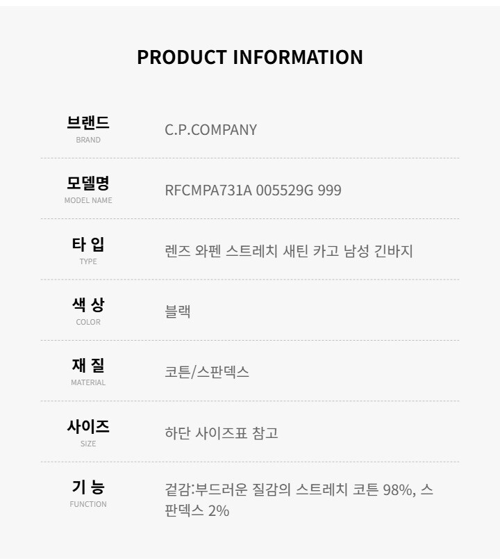 CP컴퍼니 바지 RFCMPA731A 005529G 999 렌즈 와펜 스트레치 새틴 카고 남성긴바지 당일발송