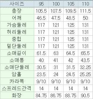 | 3. 치수 | 95,100,105,110 |
