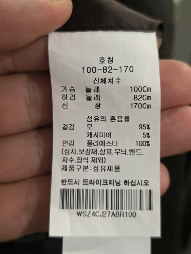 겉감 : 모 95% , 캐시미어 5%