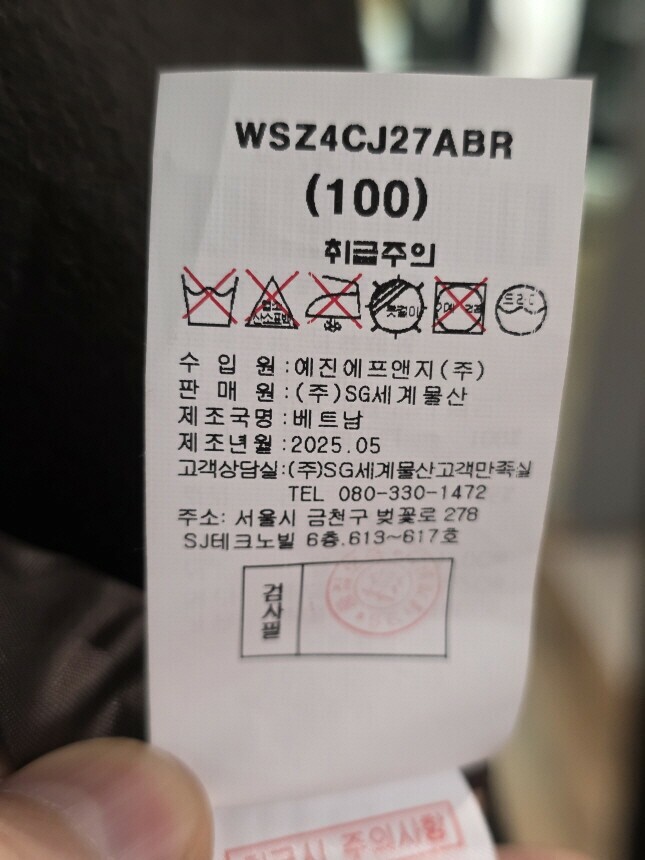 안감 : 폴리에스터 100%