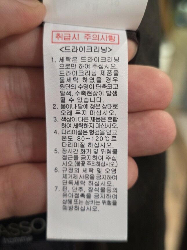 | 6. 세탁방법 및 취급시 주의사항 | 드라이크리닝 |