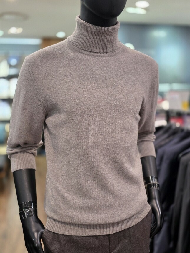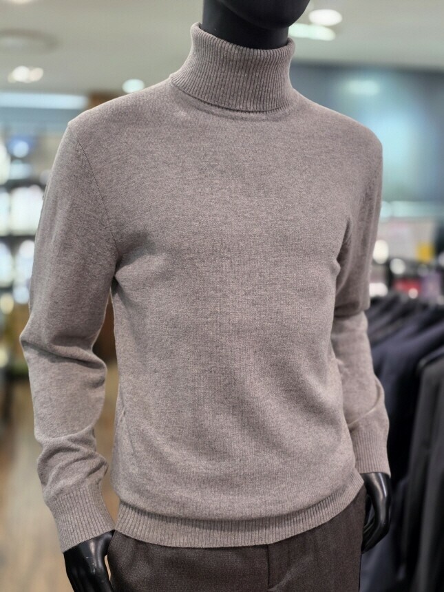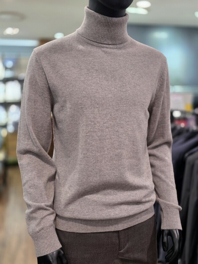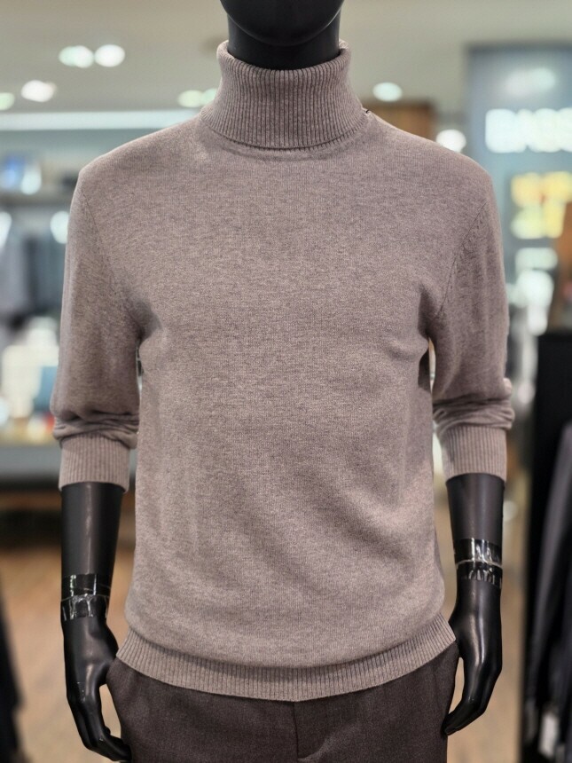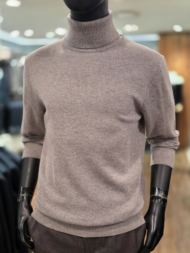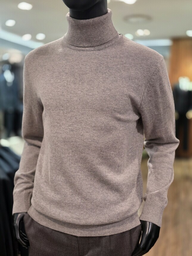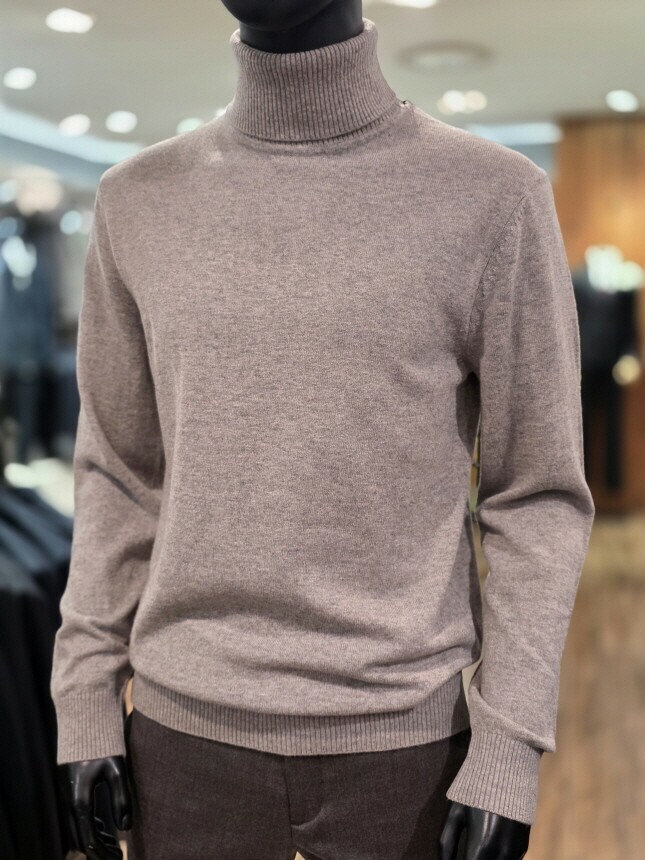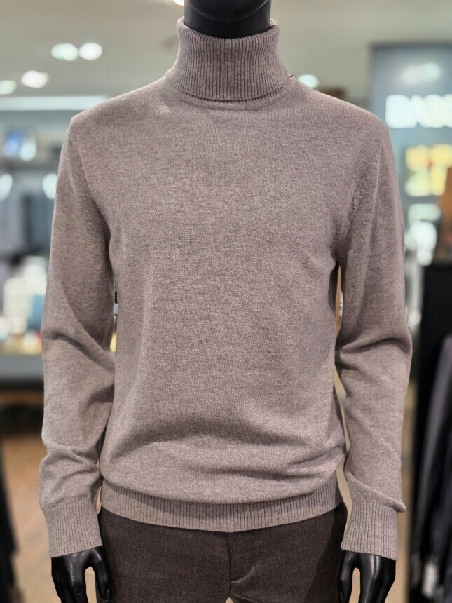 [바쏘옴므] 25년 라이트브라운 캐시미어 혼방 폴라(터틀넥) 니트