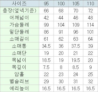 | 3. 치수 | 95,100,105,110 |