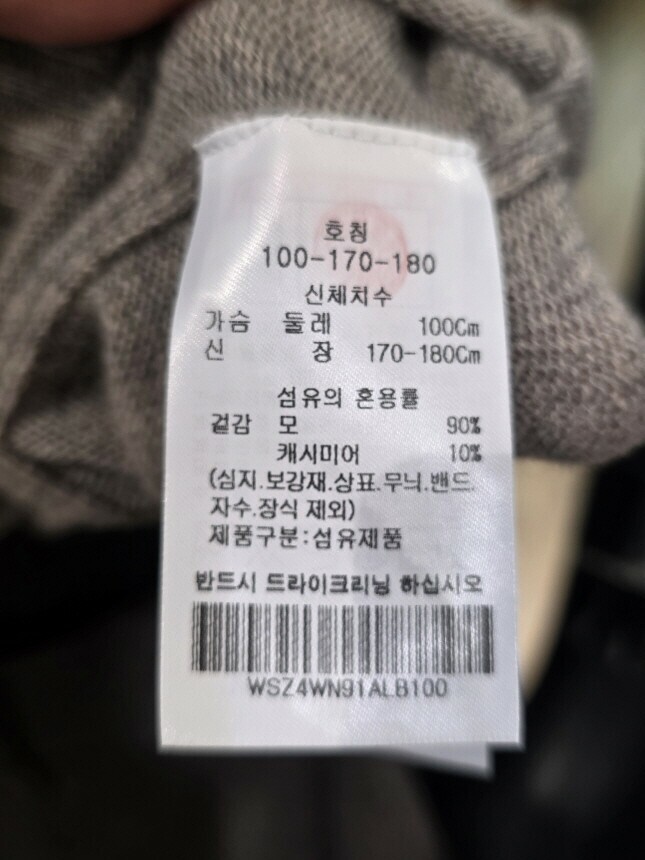 겉감 : 모 90% , 캐시미어 10%