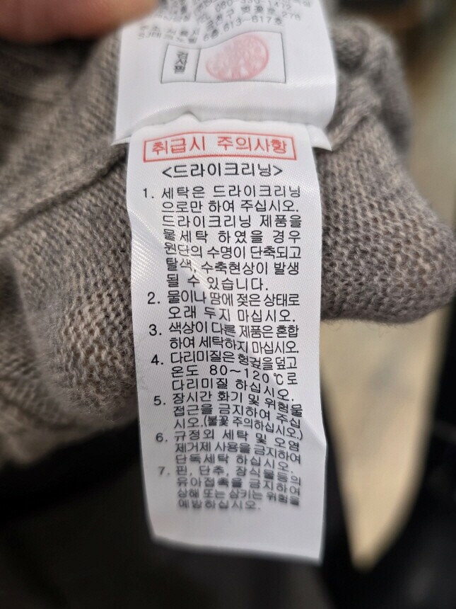 | 6. 세탁방법 및 취급시 주의사항 | 드라이크리닝 |