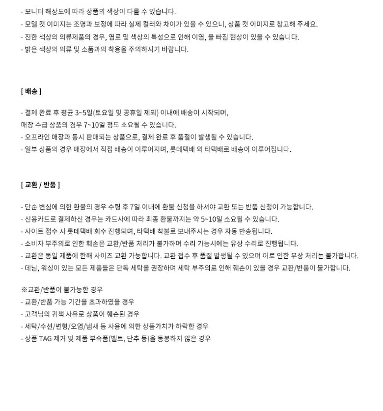 | 6. 세탁방법 및 취급시 주의사항 | 단독 드라이크리닝 또는 케어라벨 참조 |