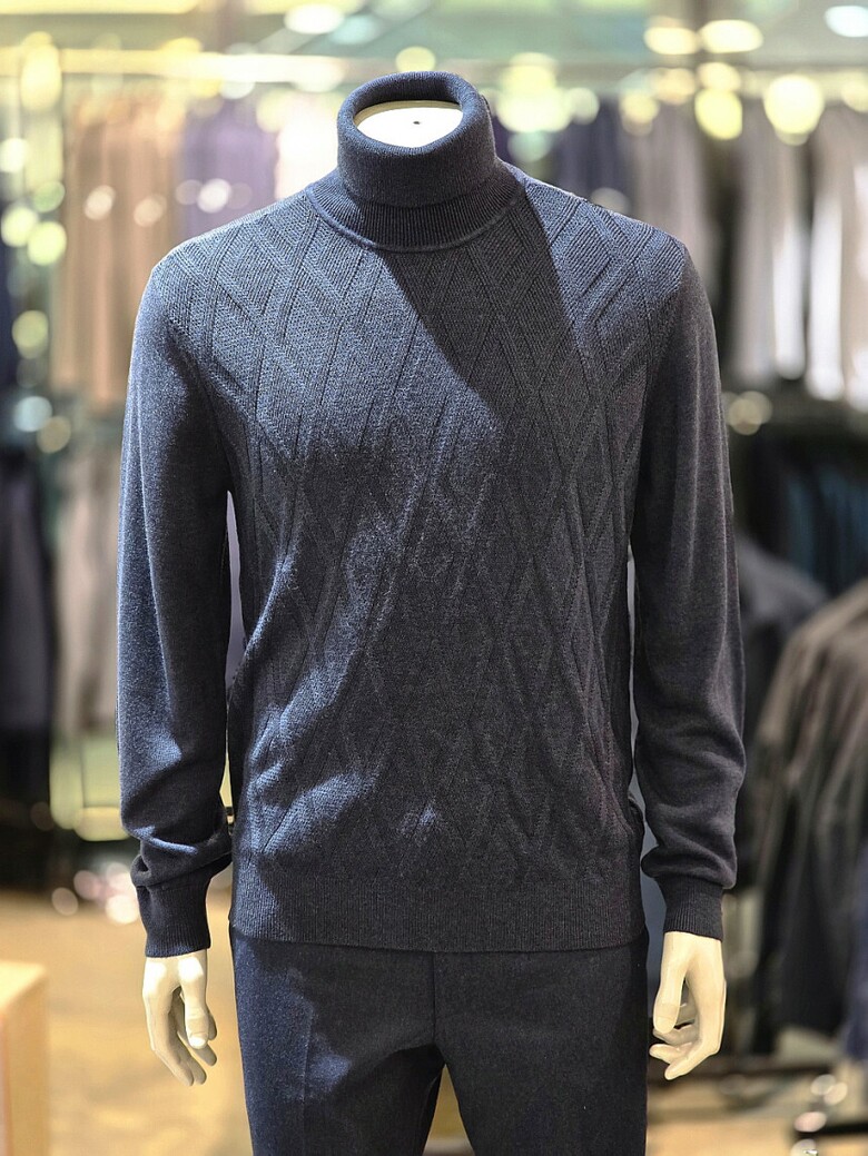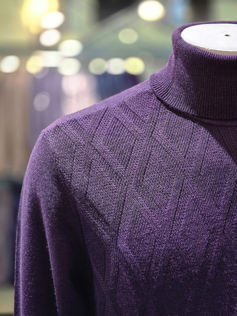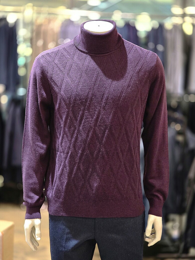 세련된 다이아 패턴이 돋보이는 롱터틀넥 니트입니다.