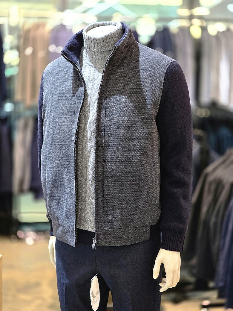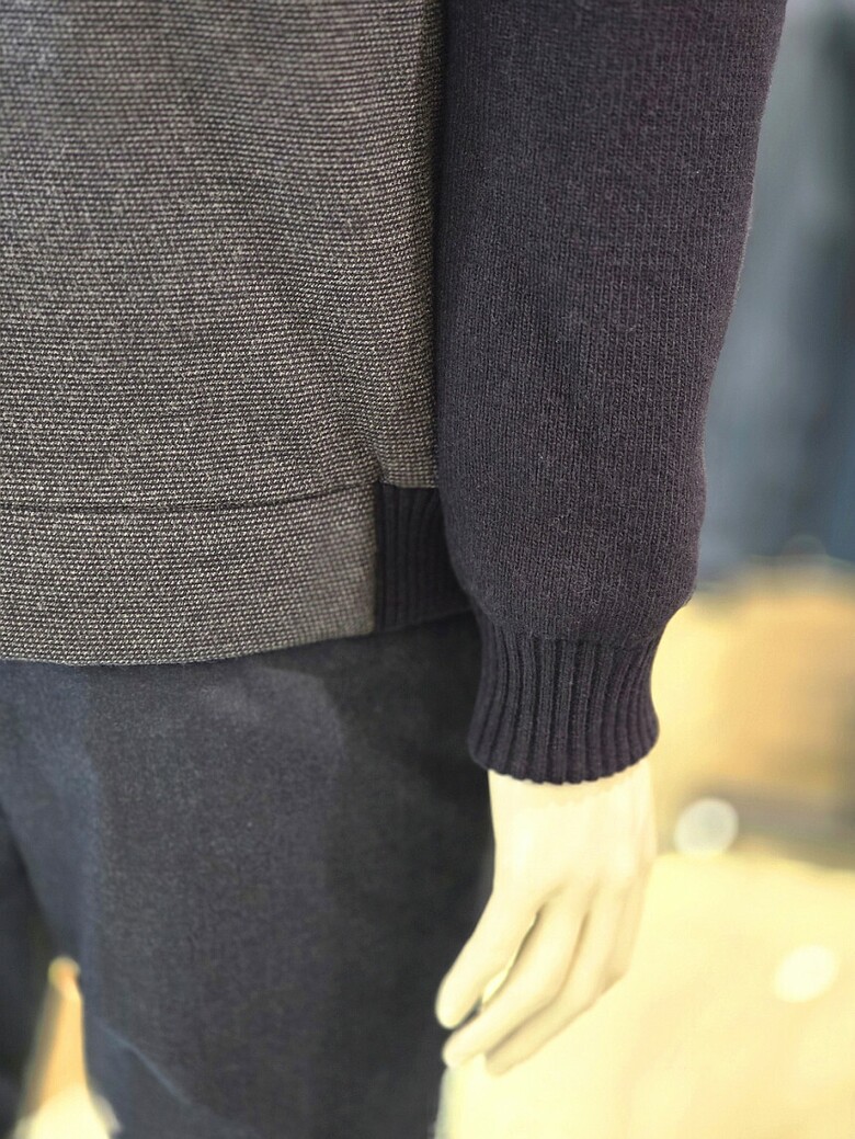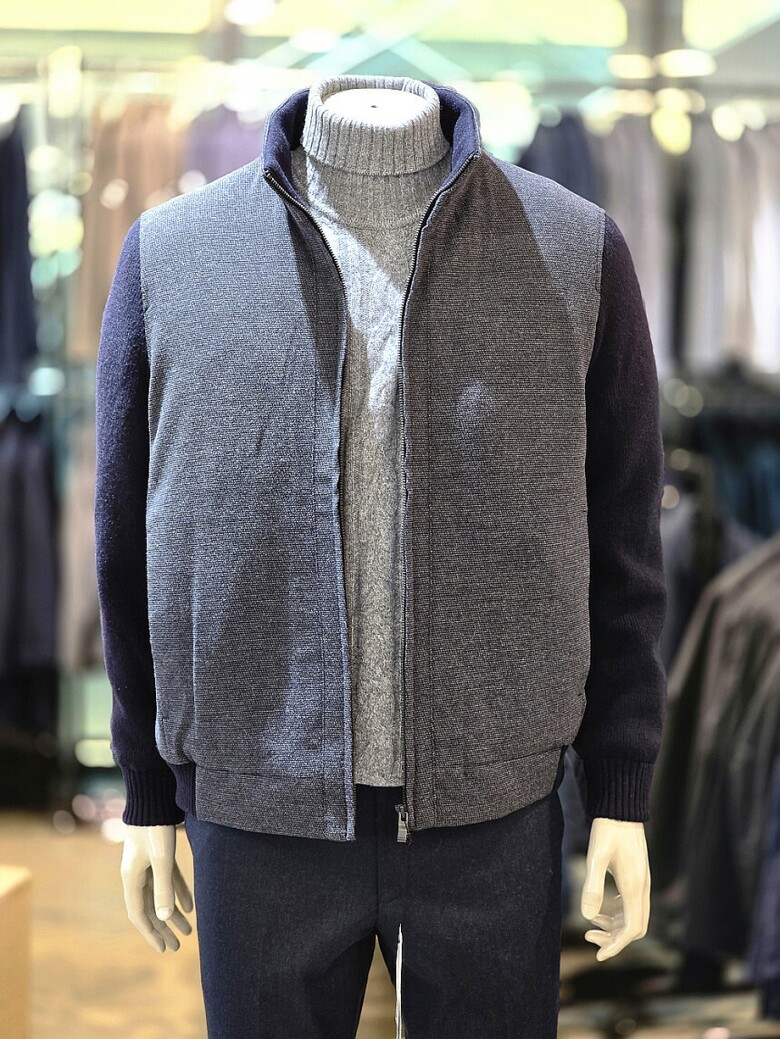 소매는 니트 소재를 사용해 편안한 착용감을 제공합니다.