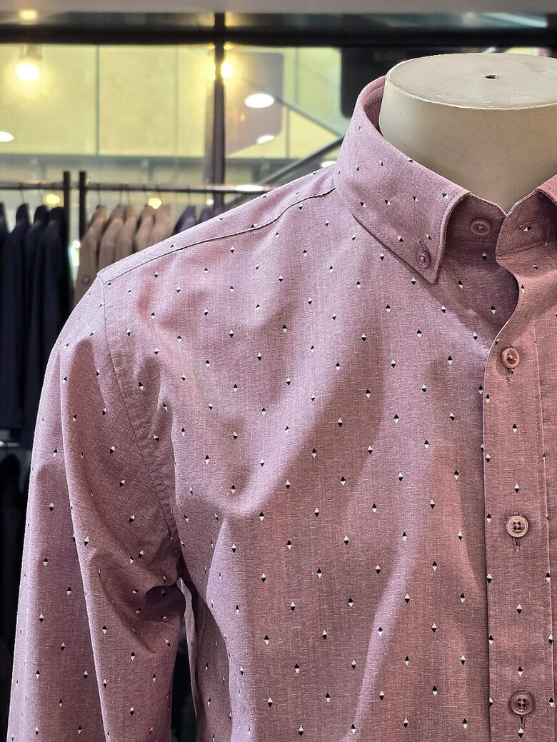 30~50대 남성을 위한 감각적인 패턴 드레스셔츠입니다.