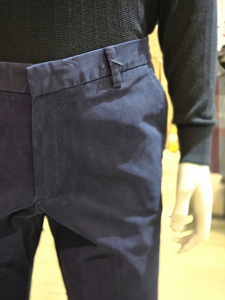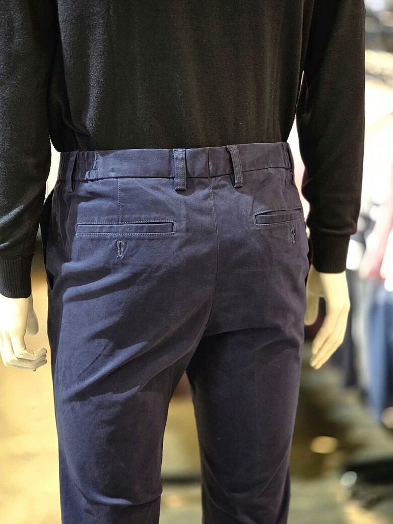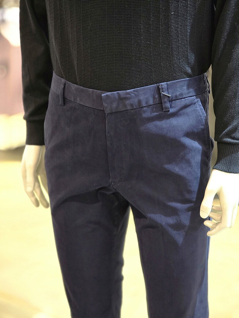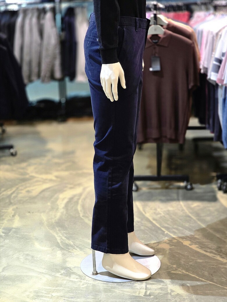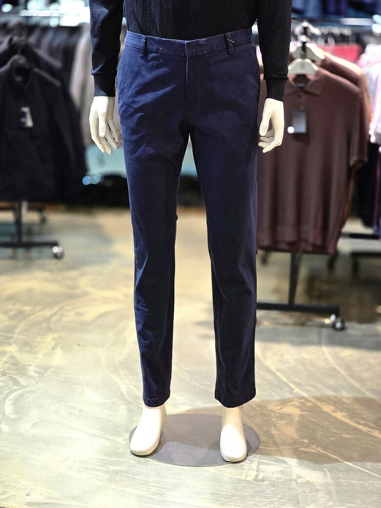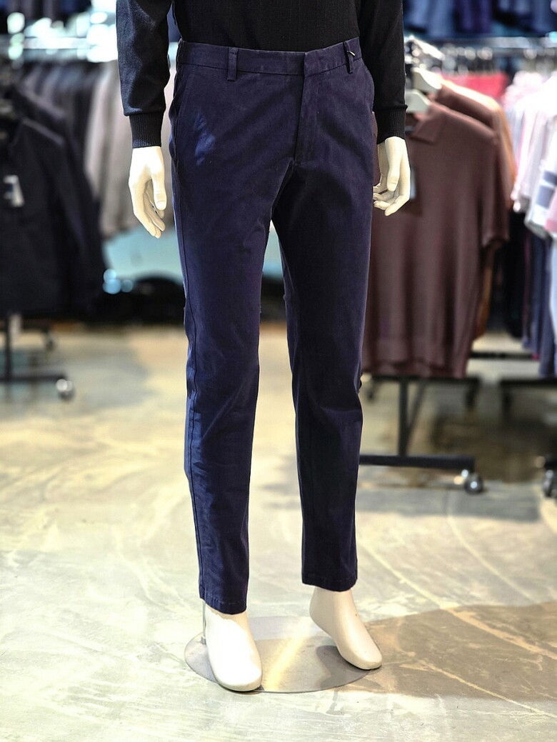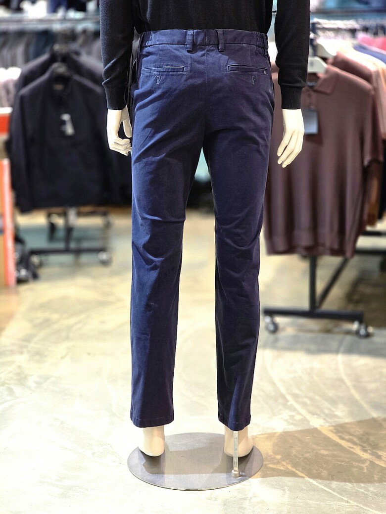 깔끔하고 세련된 네이비 컬러의 슬림핏 면바지입니다.