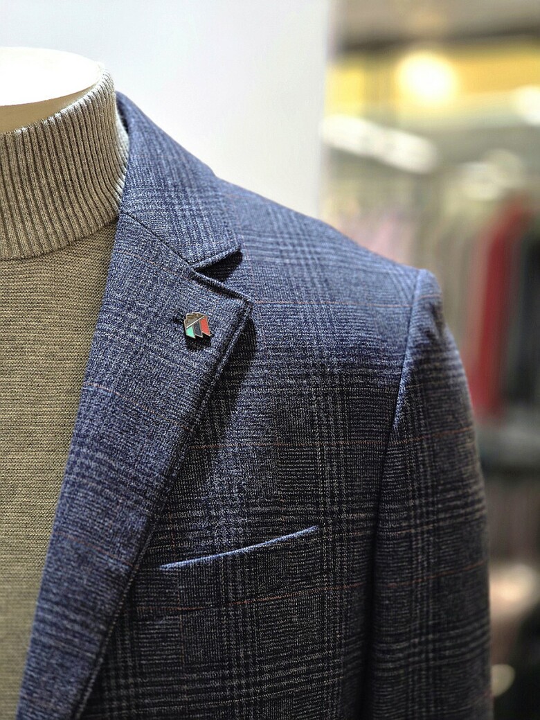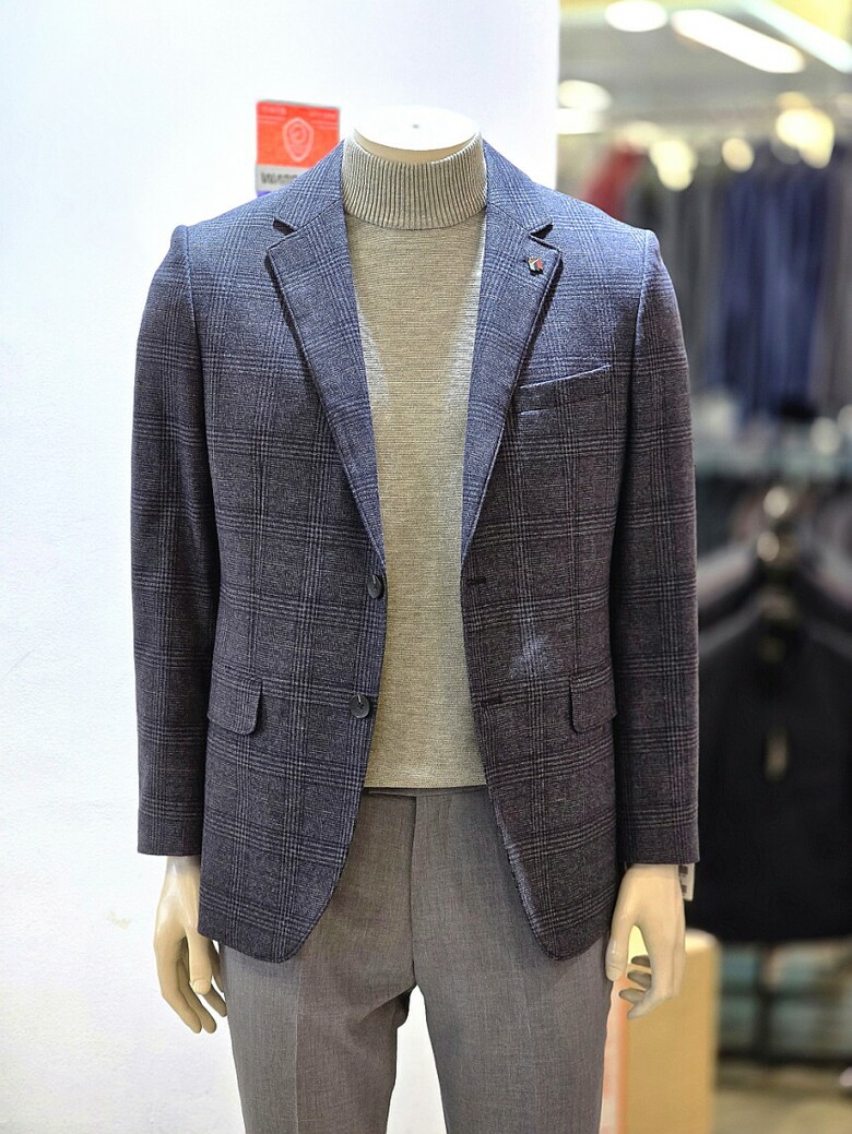 고급스러운 체크 패턴이 돋보이는 인디안 남성 자켓입니다.