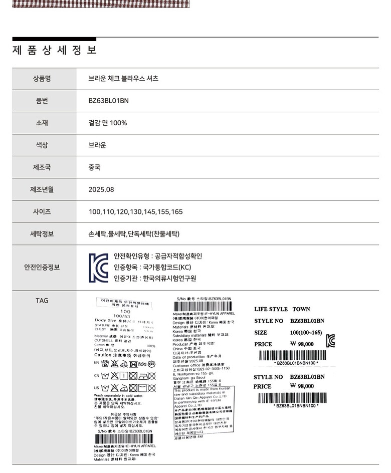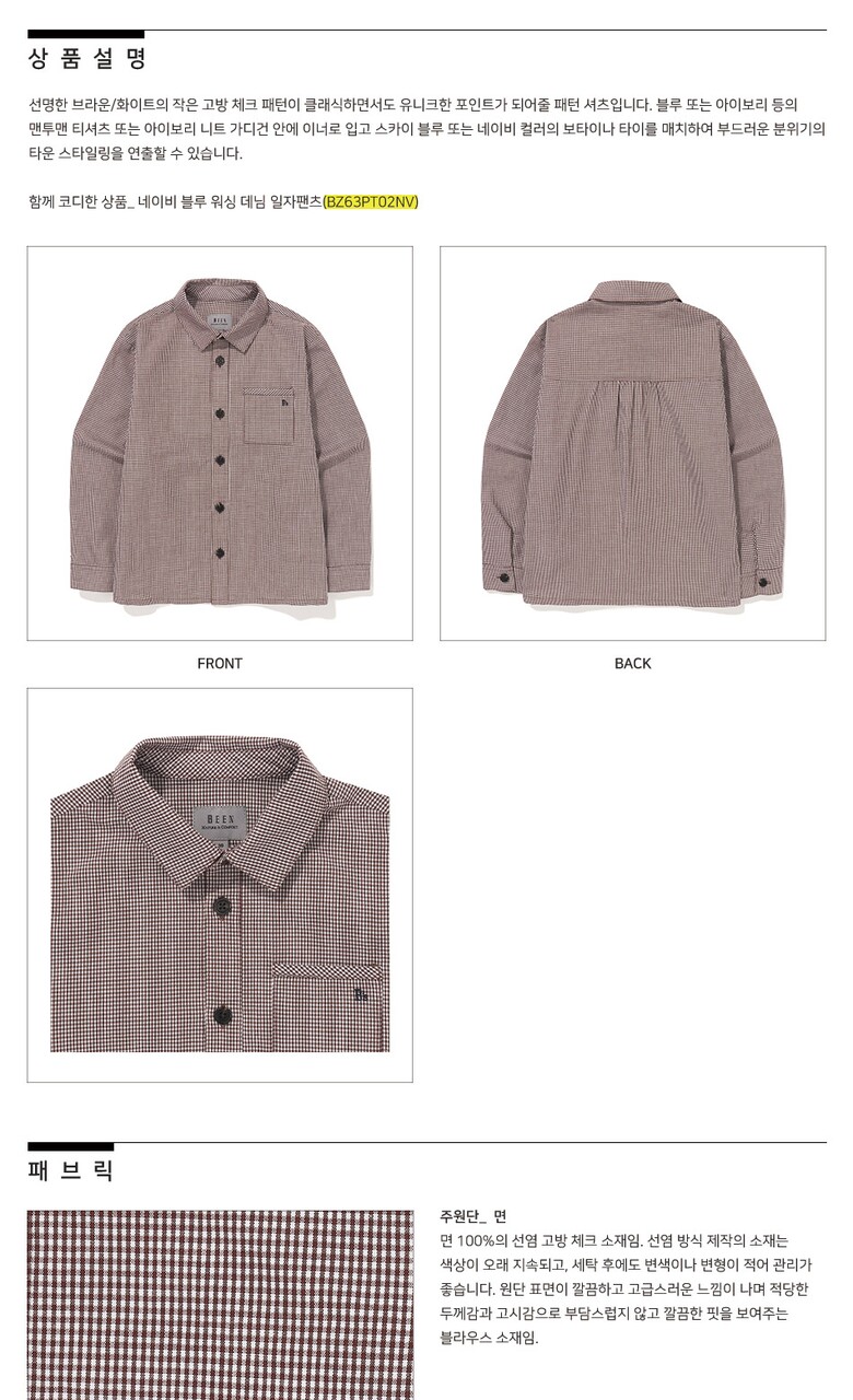 BZ63BL01BN_브라운 체크 블라우스 셔츠