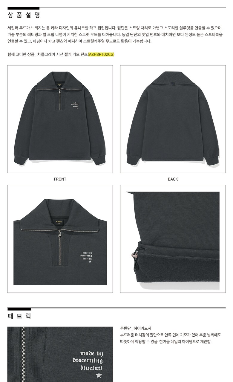 AZH8TS02CG_차콜그레이 스트링 기모 하프집업