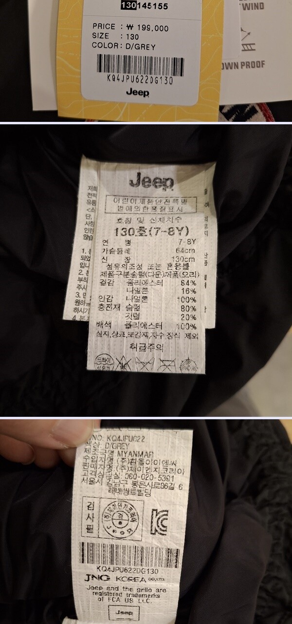 제품소재 : 겉감-폴리에스터84%, 나일론16% 안감-나일론100% 충전재-솜털80%, 깃털20% 배색-폴리에스터100%
