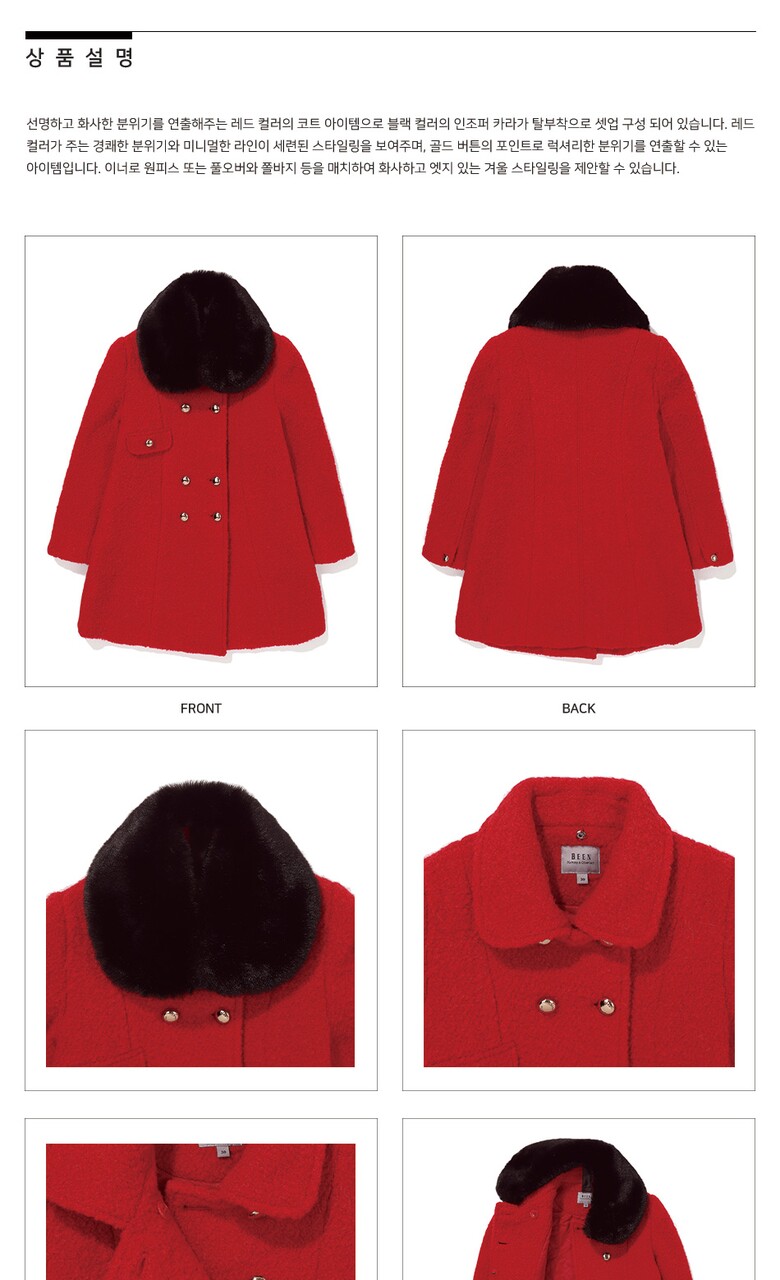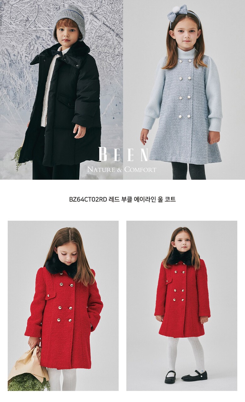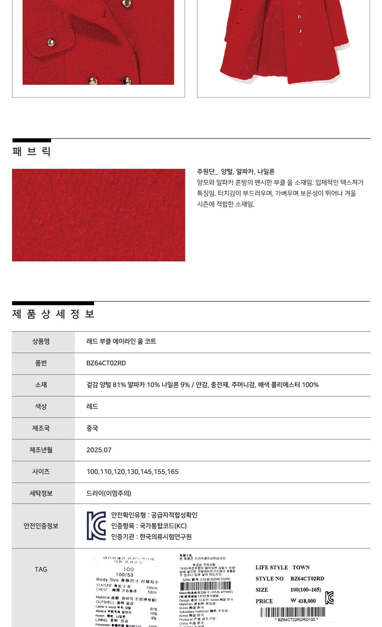 1. 품명 및 모델명 | BZ64CT02RD 레드 부클 에이라인 울 코트 |