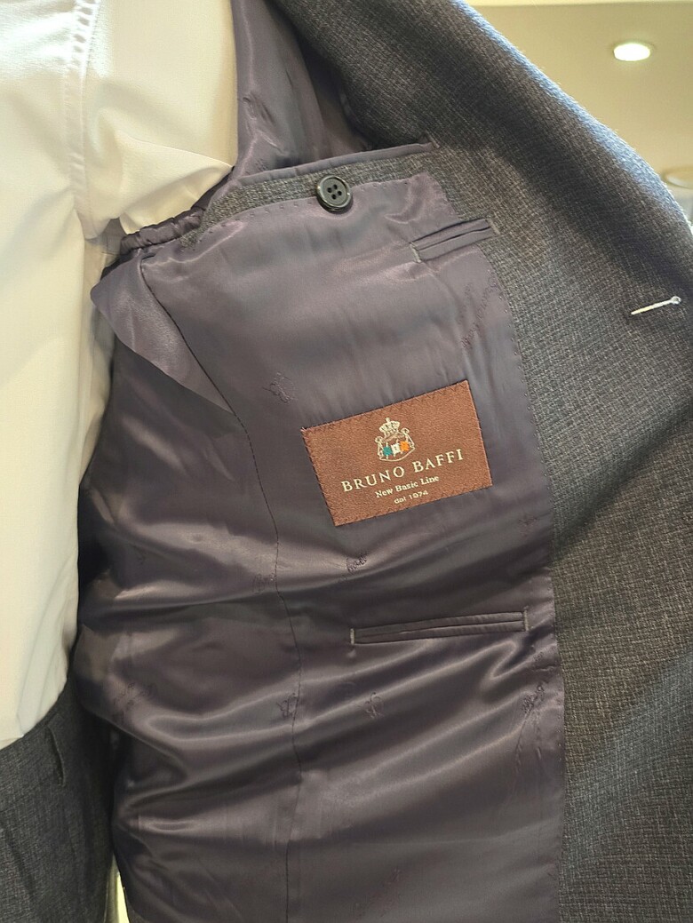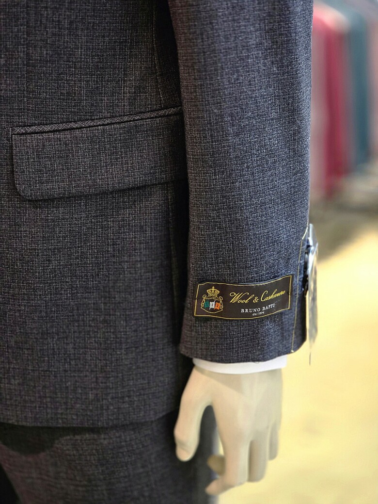 고급스러운 그레이 컬러의 울 90%와 캐시미어 8% 혼방 소재로 제작된 정장 자켓입니다.