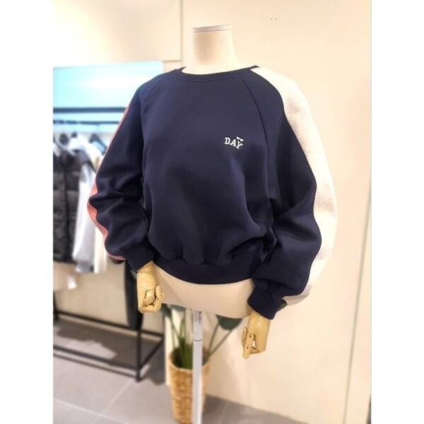 KETSOC07NA_데이 배색 자수 기모 맨투맨 네이비