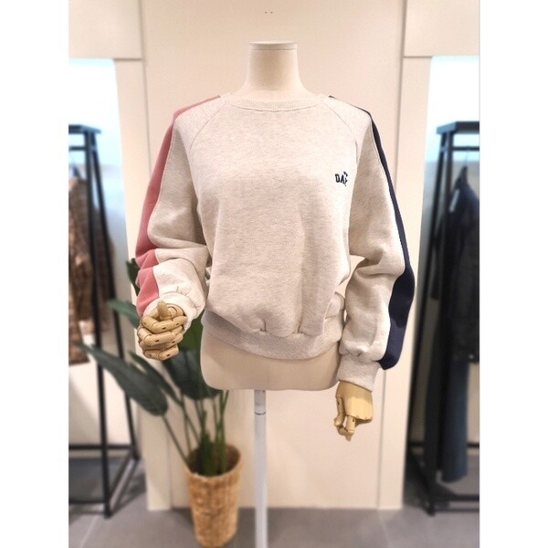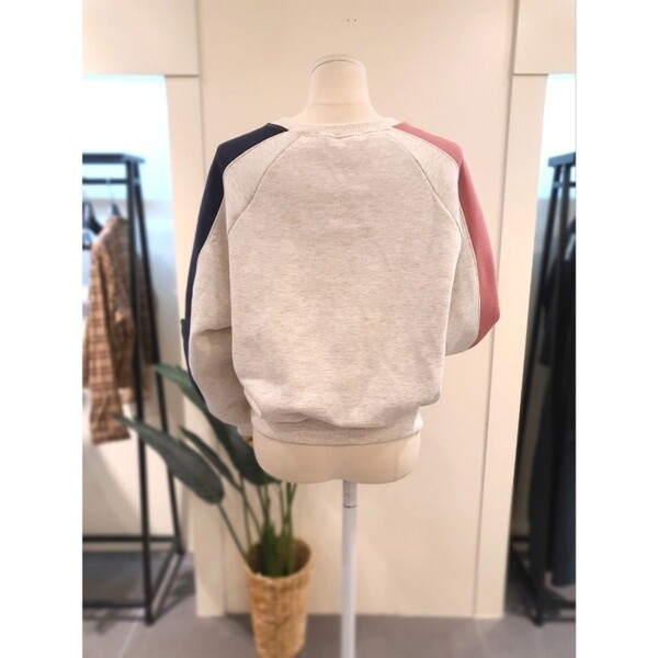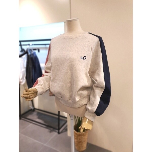 KETSOC07GR_데이 배색 기모 맨투맨 오트밀