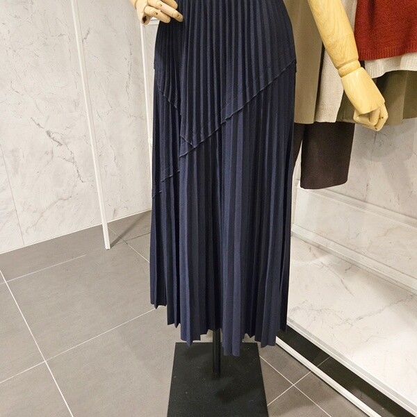 F5CSK505A_사선 밴딩 플리츠 스커트