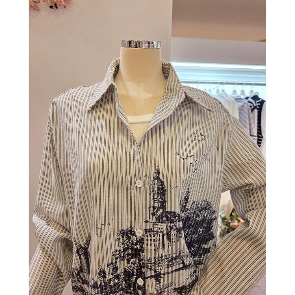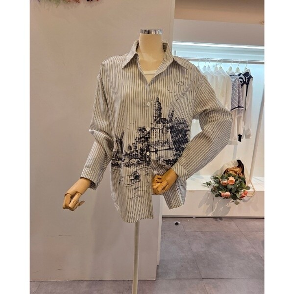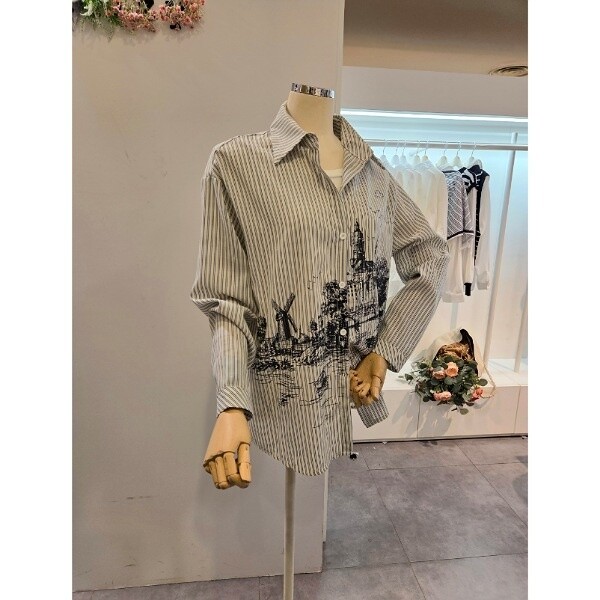 CP8WBL05_블랙 프린트 스트라이프 셔츠