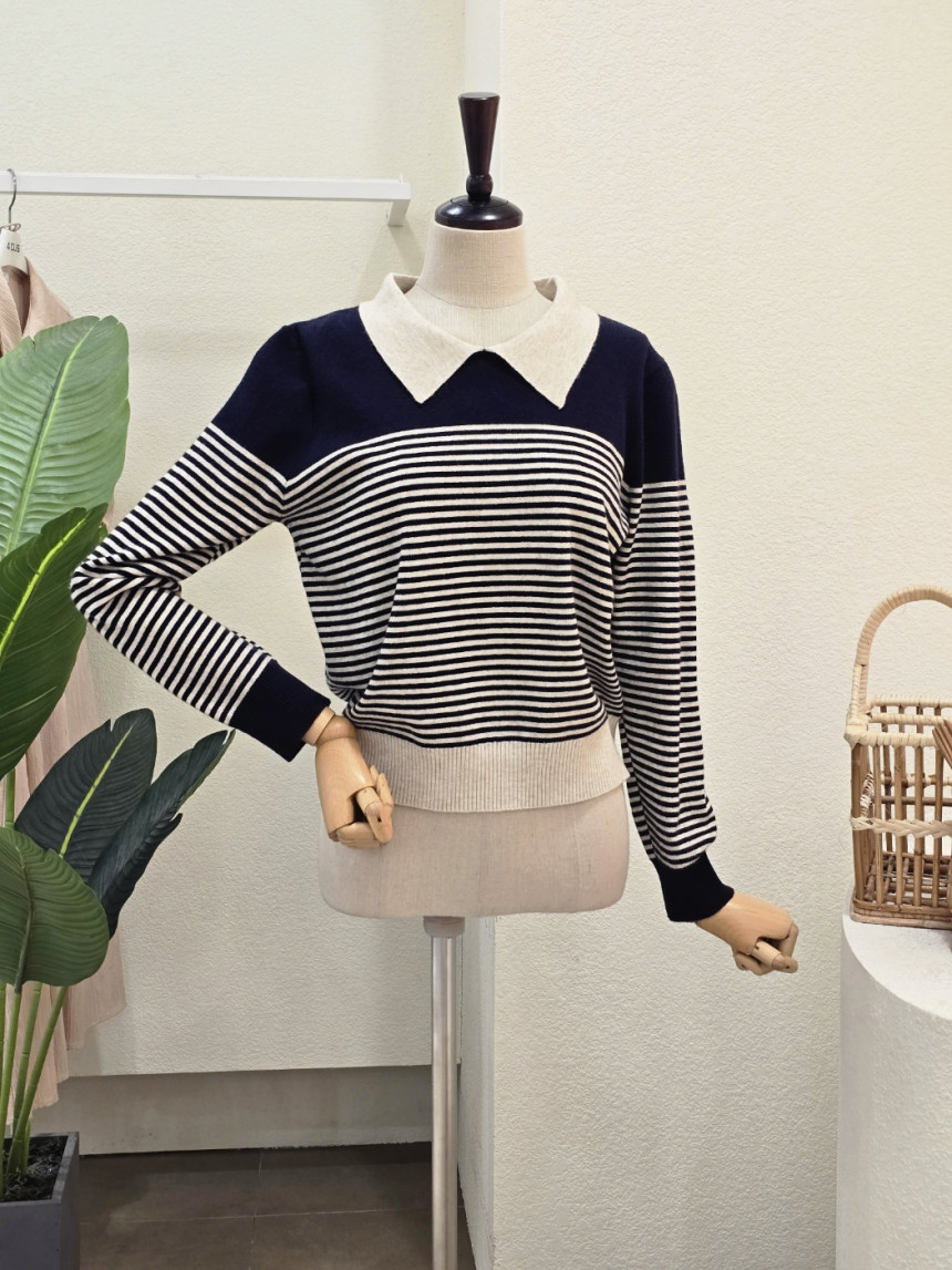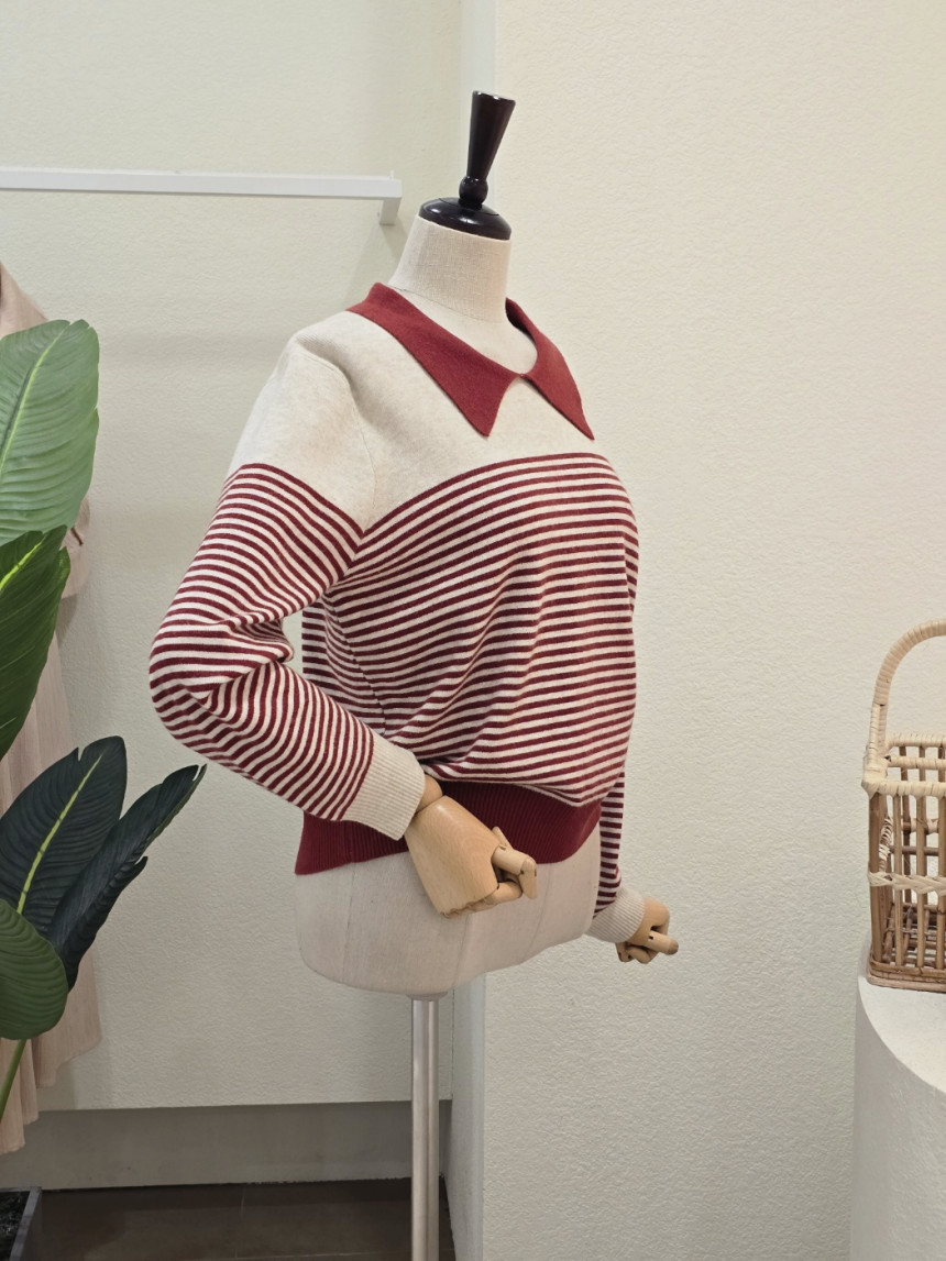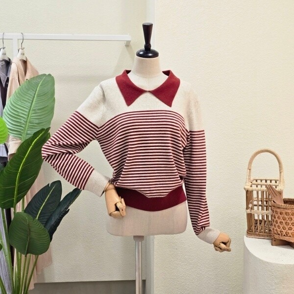 FF5I7KT00095_스트라이프 컬러 카라넥 니트