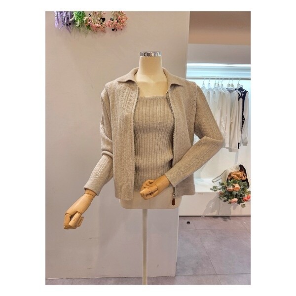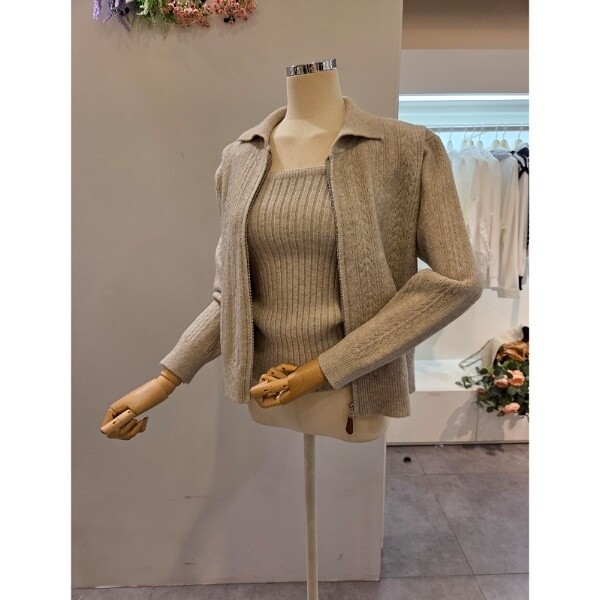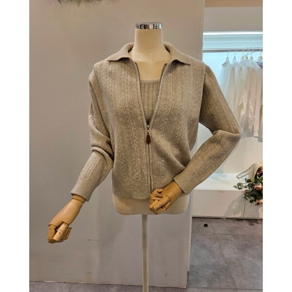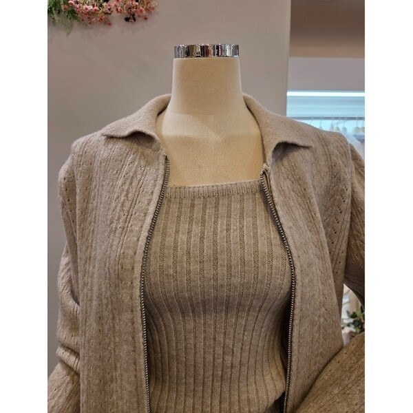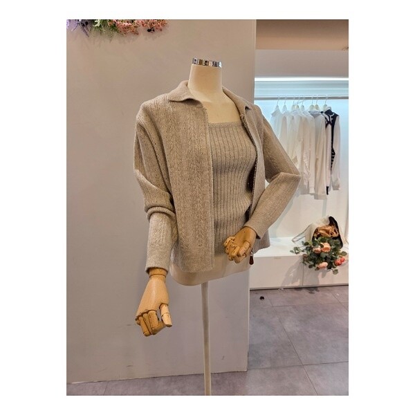 CP8WSU01_끈탑 카라 집업 가디건 세트