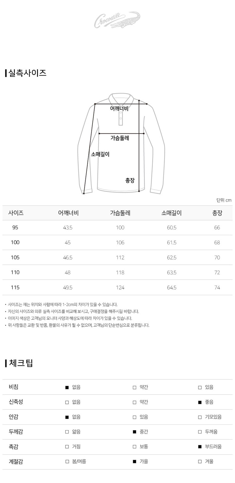 중간 두께감의 신축성이 많아 골프나 야외 활동시에도 좋아요!