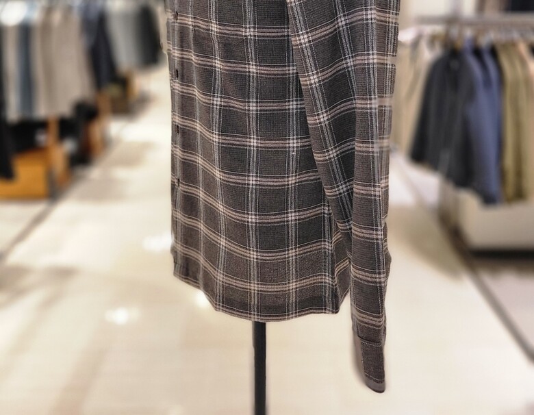 폴리에스터,레이온 혼방 소재의 얇은 두께감의 고급스런 가을 체크 납방 입니다.