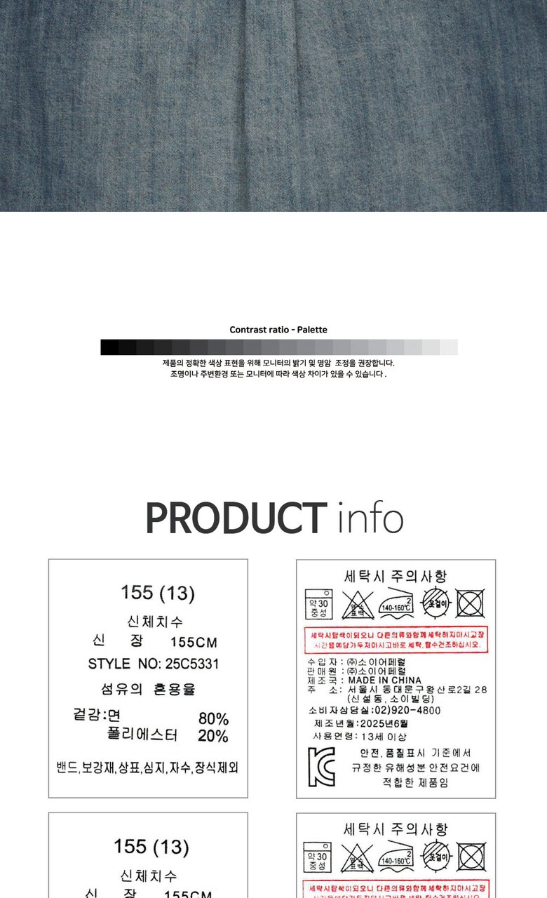 1. 제품 소재 (섬유의 조성 또는 혼용률을 백분율로 표시, 기능성인 경우 성적서 또는 허가서) 상품상세참조