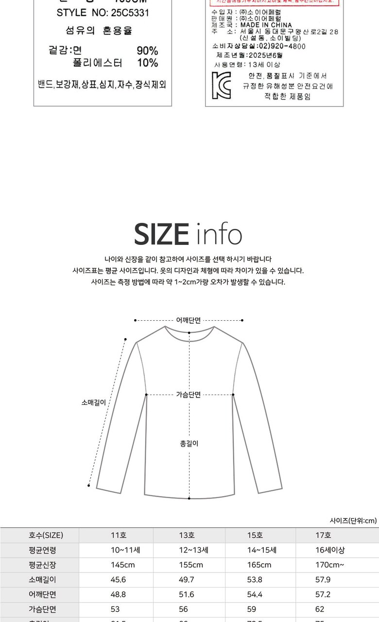 3. 치수 상품상세참조