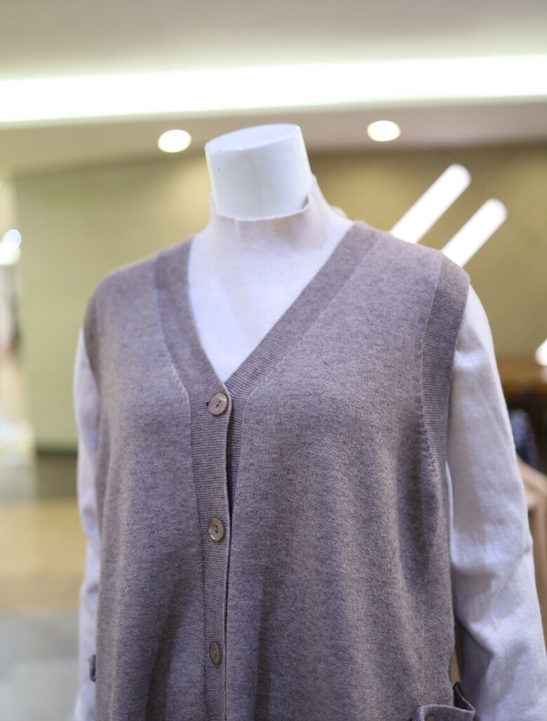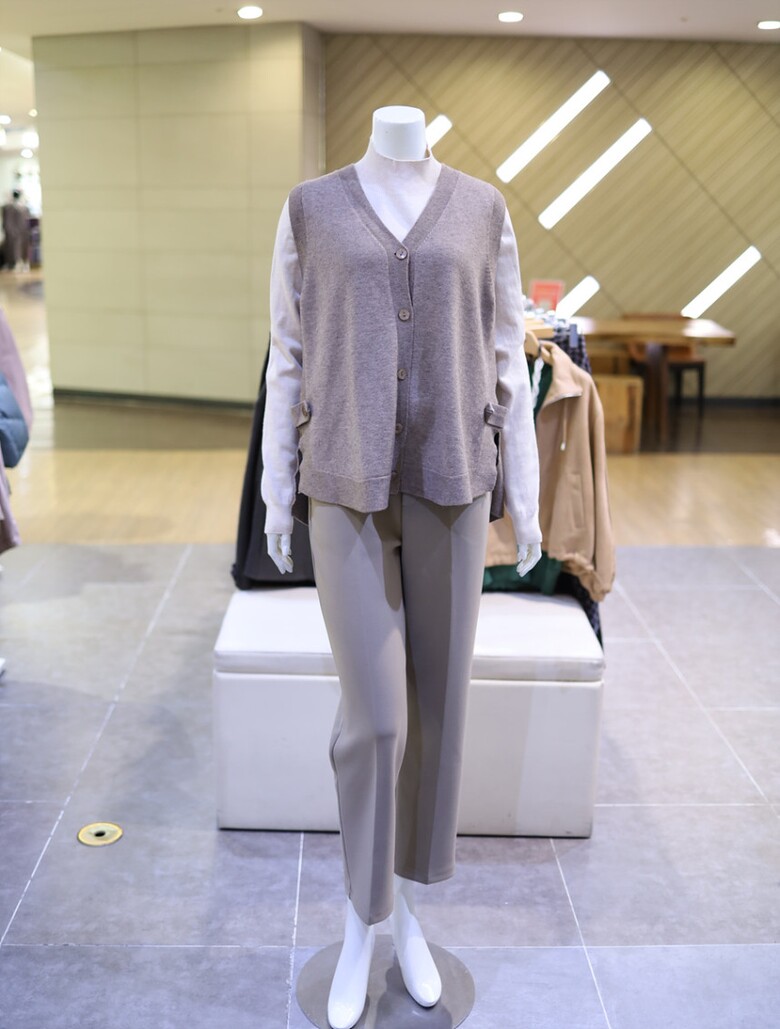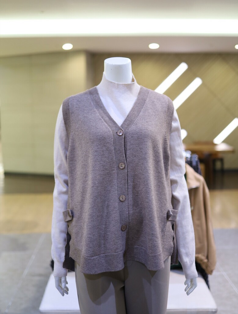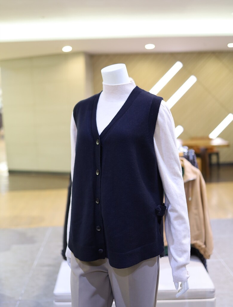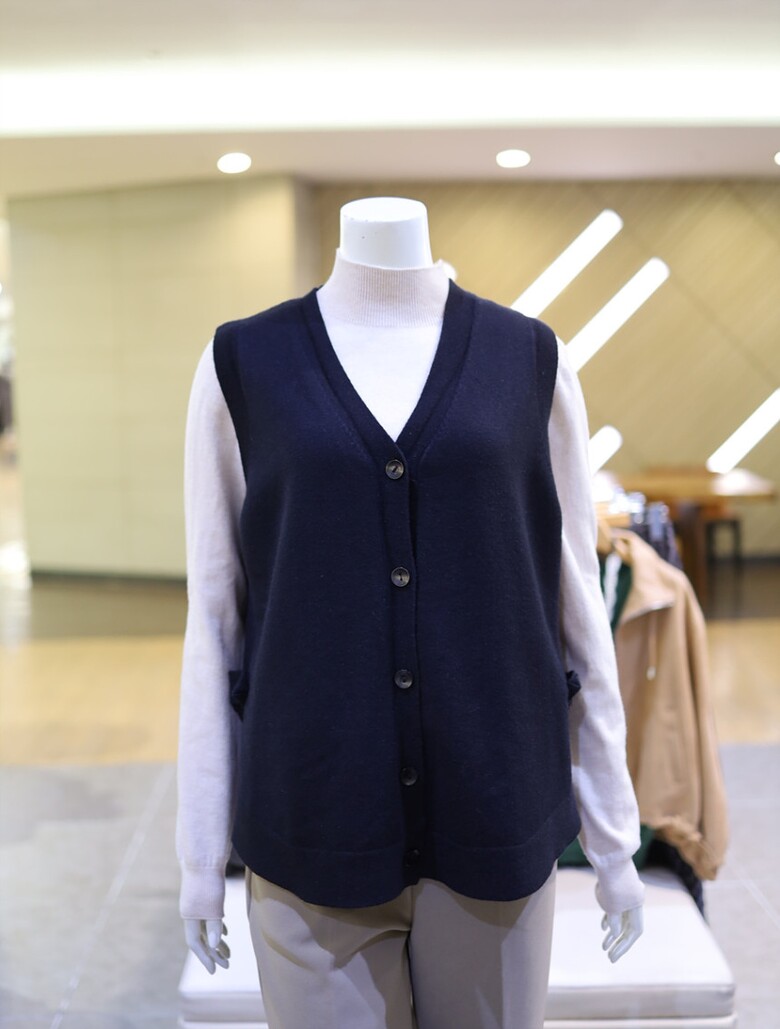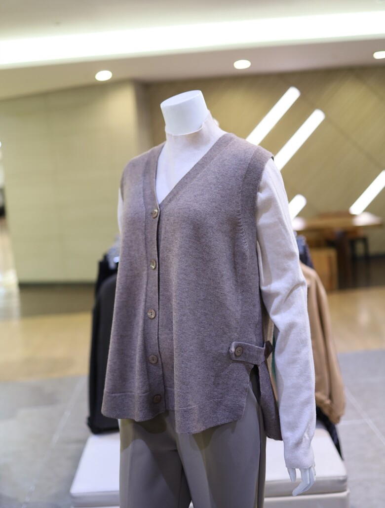 사이드 슬릿과 버튼 여밈이 포인트가 되는 니트 조끼!
