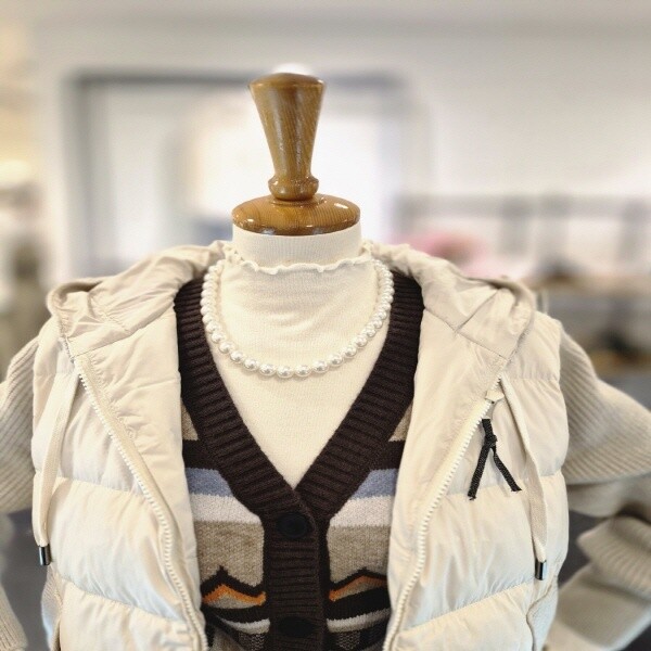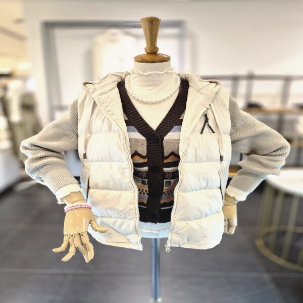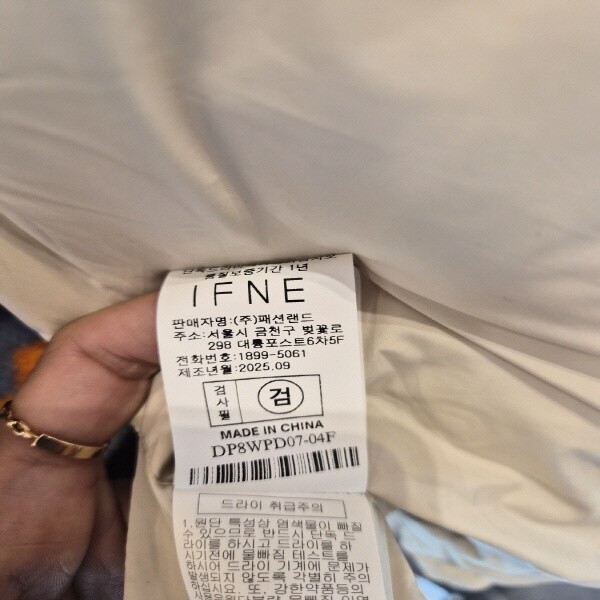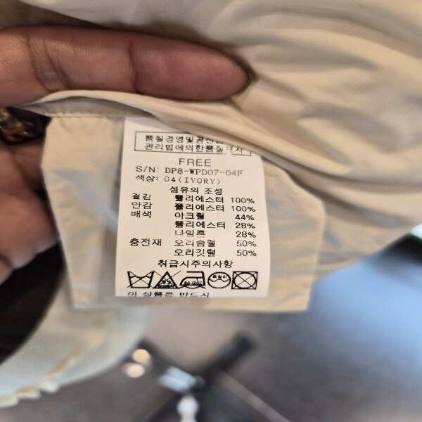 제품소재 : 겉감 폴리에스터100% 배색 아크릴44%,폴리에스터28%,나일론28%충전재 오리솜털50%,오리깃털50%