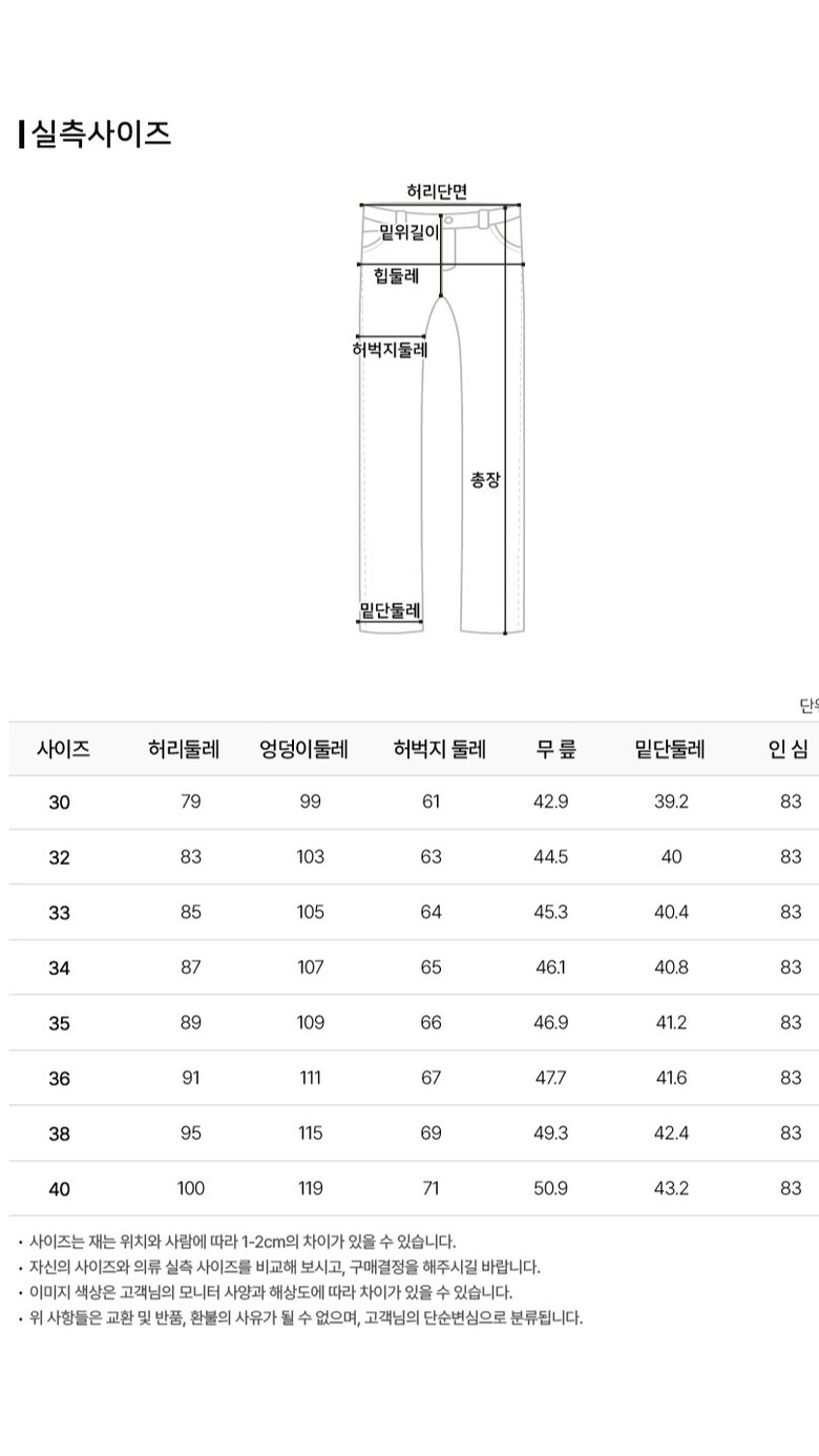치수 : 30,32,33,34,35,36,38