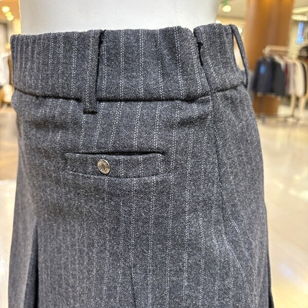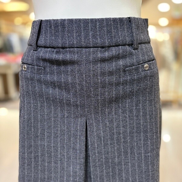 잔잔한 스트라이프 패턴을 사용하고, 앞주머니 스냅 디테일을 넣어 고급스럽게 연출 가능하다.