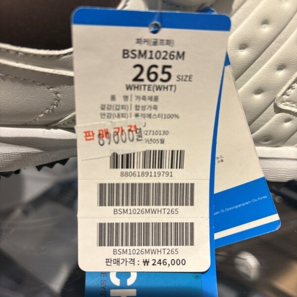 1. 제품 소재 (운동화인 경우에는 겉감, 안감을 구분하여 표시) | 소재정보 겉감 갑피 극세사합성가죽100%안감 방수원단60% 메쉬40%깔창 PU폼100g겉창 파이론 TPU |