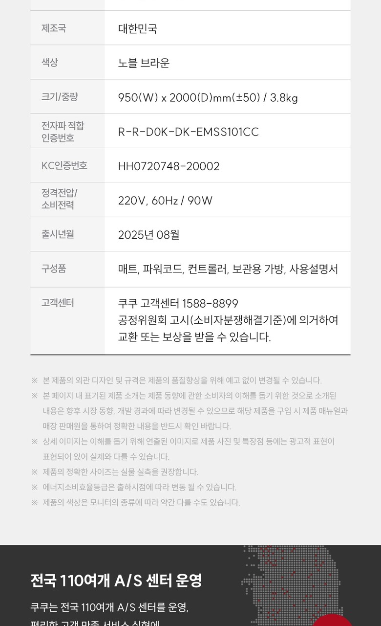 6. 크기/무게(폭x높이x깊이)(cm) | W950 x D2000 mm,3.8kg |