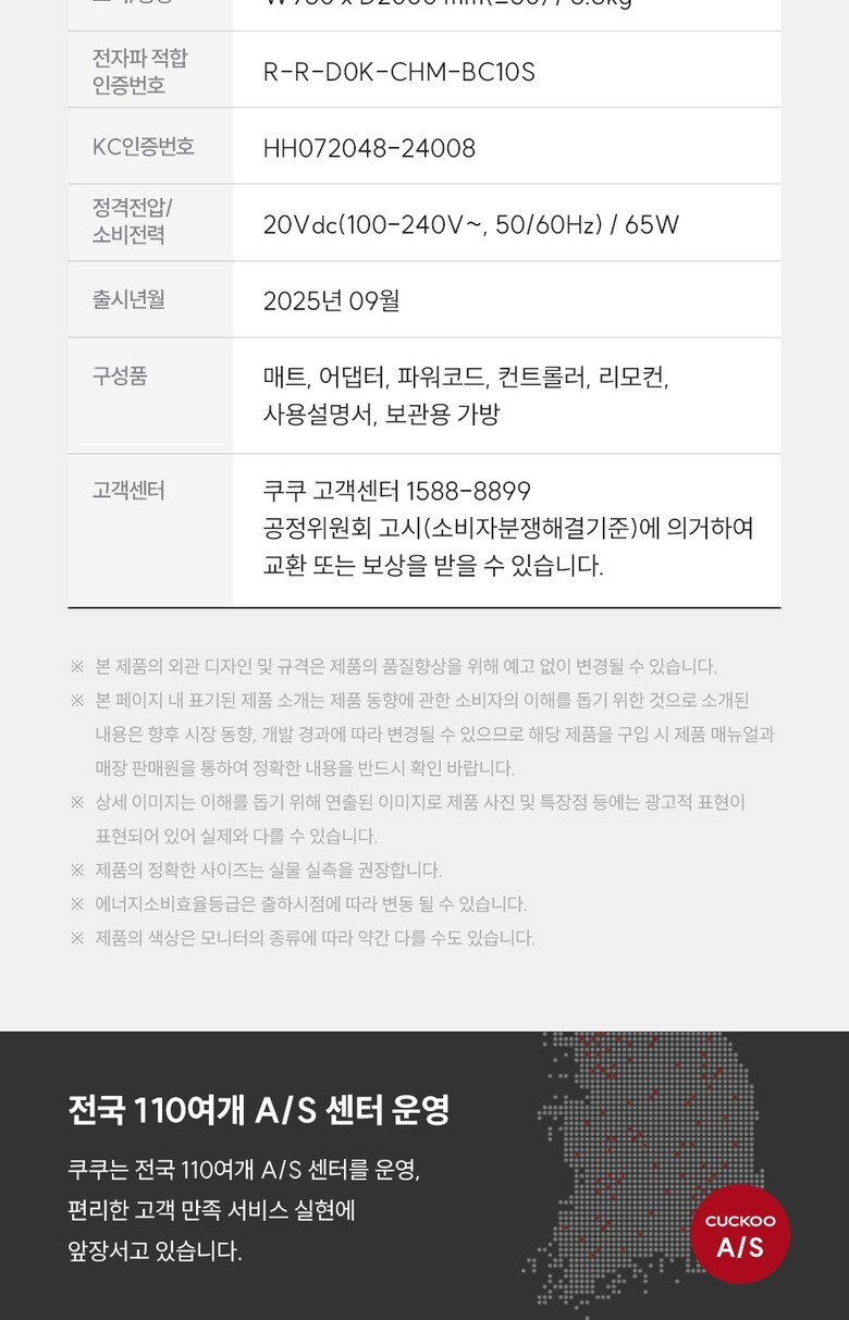 11. A/S책임자와전화번호 | 쿠쿠고객센터 1588-8899 |
